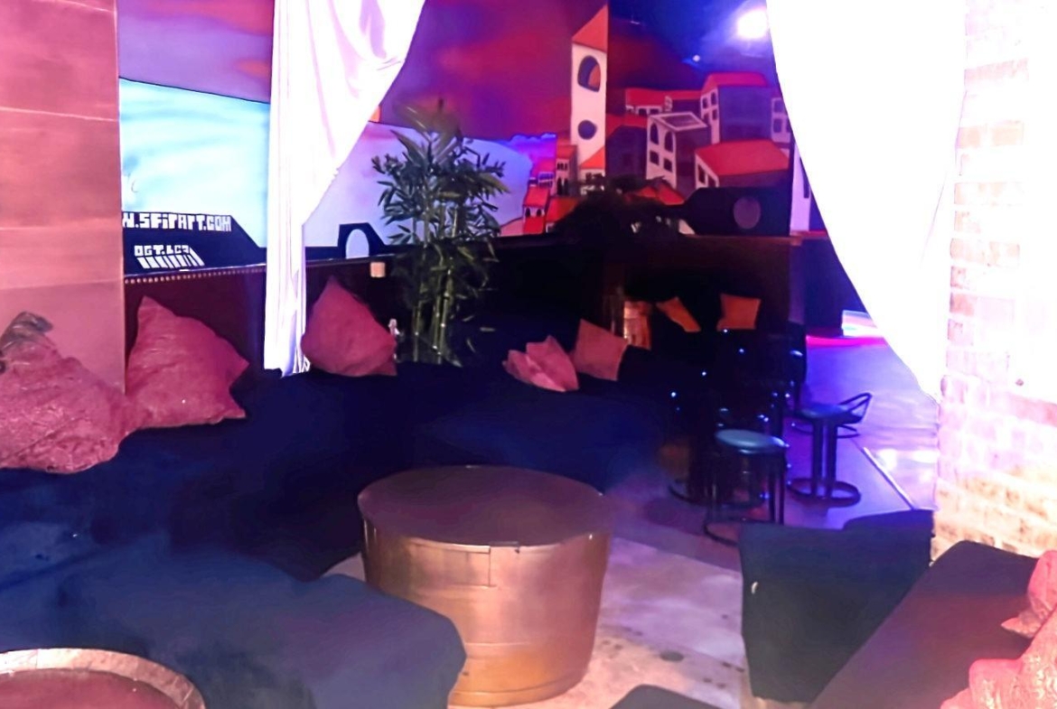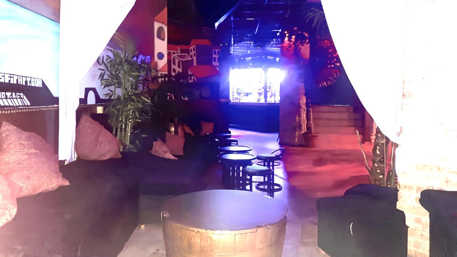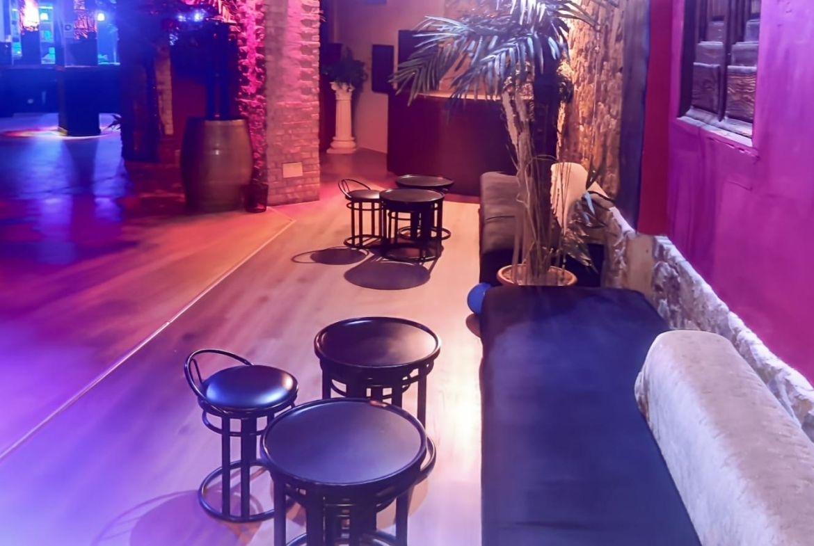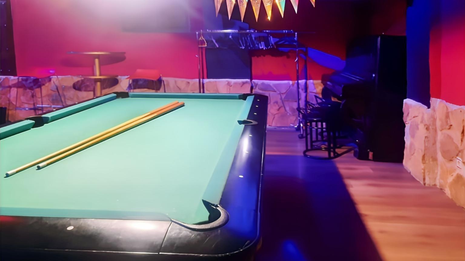 ?Planta sótano: Sala de fiestas de 218 m², completamente equipada con zona chillout, escenario, mesas de billar, futbolín, dardos y dos barras para bebidas. Cuenta con licencia de bar 1ª especial, con apertura hasta las 4 de la mañana. Dispone de dos baños y entradas independientes a cada local.