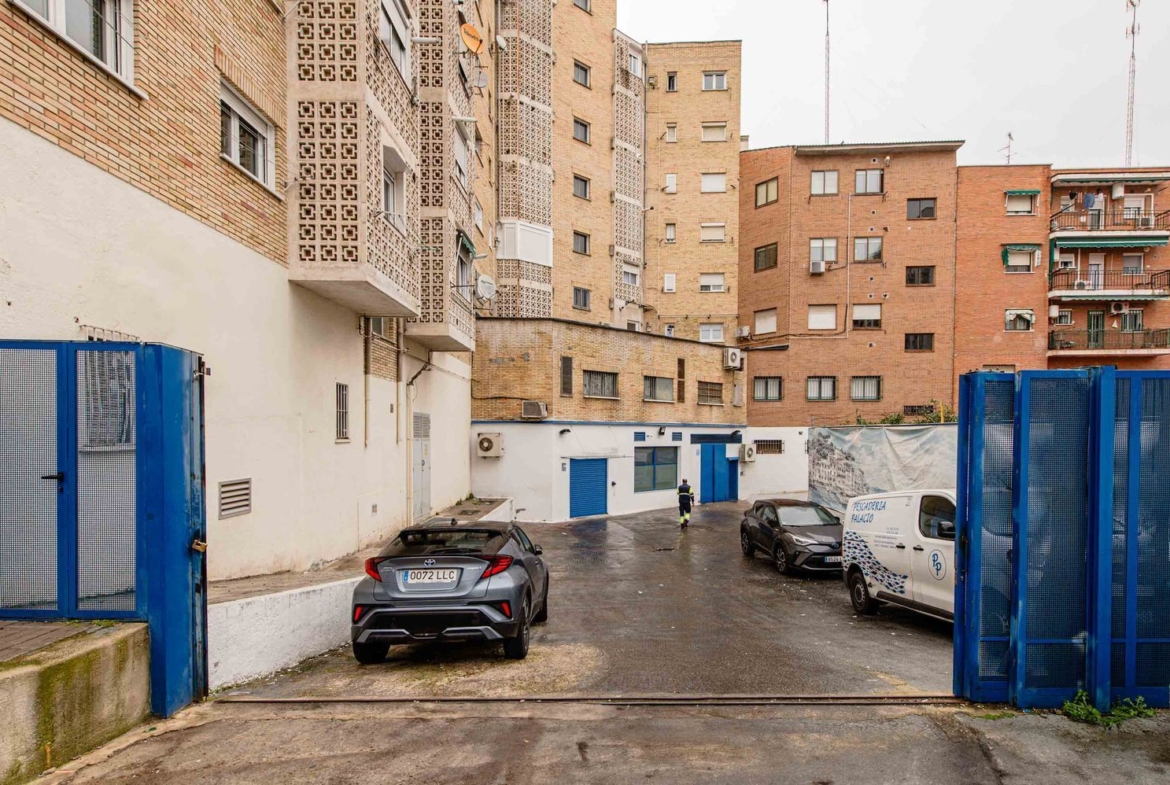 Situado en el Centro Urbano de Móstoles, este local se asienta sobre dos fincas además de contar con un patio abierto registrados de 346,86 m², que actualmente se utiliza como aparcamiento para vehículos y furgonetas. Este patio dispone de una entrada de cinco metros, colindante con el Paseo de Arroyomolinos, lo que proporciona un acceso cómodo y directo.