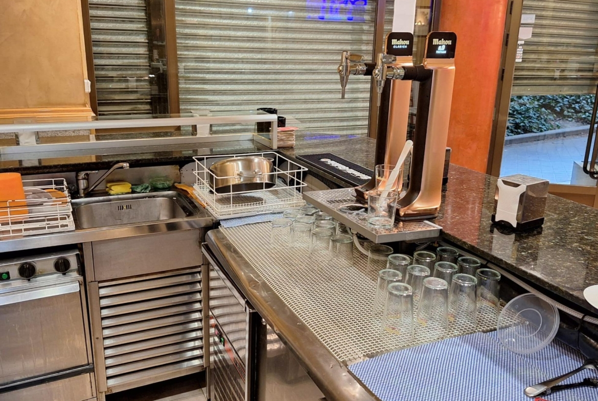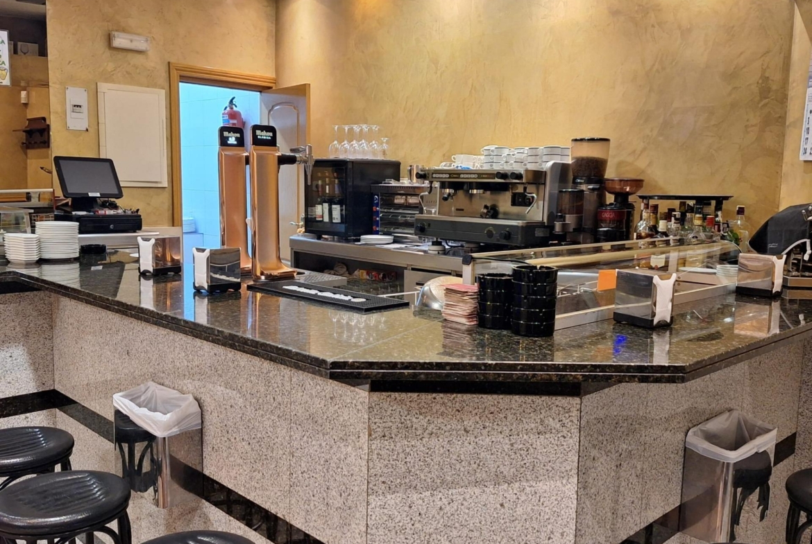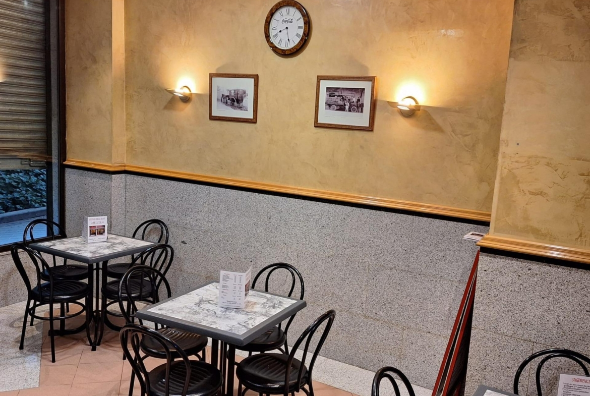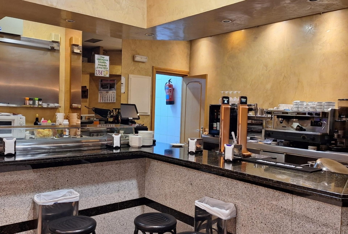 Estupendo negocio de bar -restaurante completamente montado con una antigüedad de mas de 20 años con clientela muy consolidada, salida de humos y barra de 10 metros en mármol, paredes de estuco y maquinaria en perfecto estado de uso.