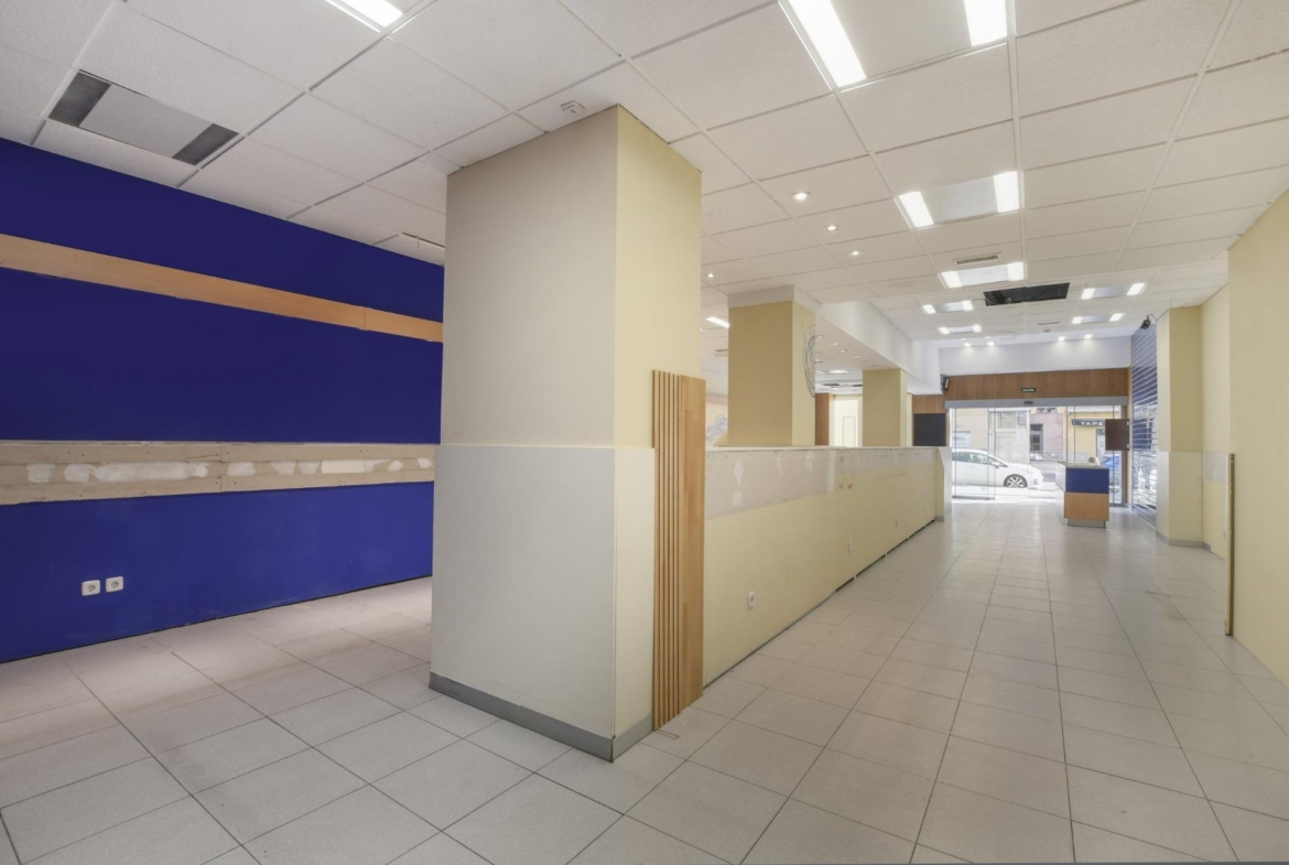 La superficie se divide en planta calle DIAFANA de 302 m2 y una pequeña entreplanta de 53 m2 de uso oficina-despacho con acceso a través de escaleras interiores desde el mismo local. La entrada del local tiene cierre persiana eléctrica y puertas automáticas.