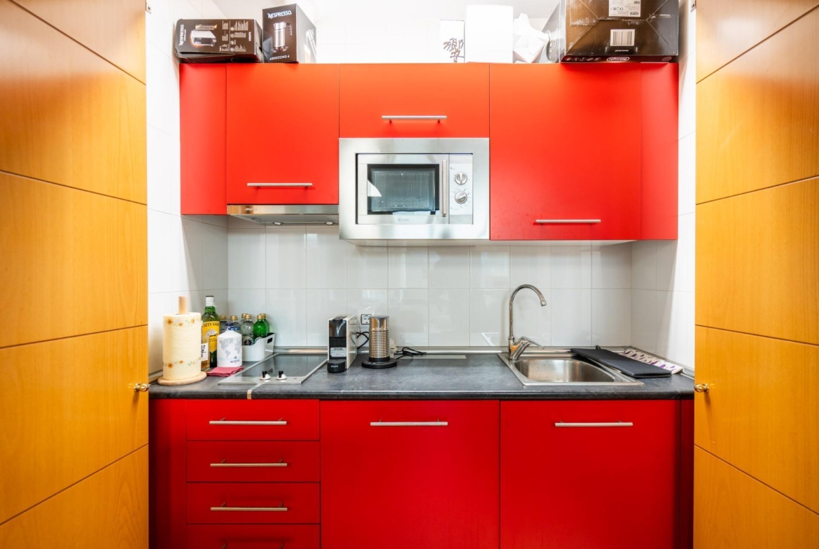 Ubicada en una segunda planta con ascensor, esta propiedad destaca por su luminosidad y su cuidada distribución. Dispone de una cocina completamente equipada, integrada en el espacio principal mediante puertas abatibles que permiten cerrarla o dejarla abierta, adaptándose fácilmente a cada necesidad. El baño es amplio y completo, con plato de ducha y ventana al exterior, aportando ventilación natural y comodidad.