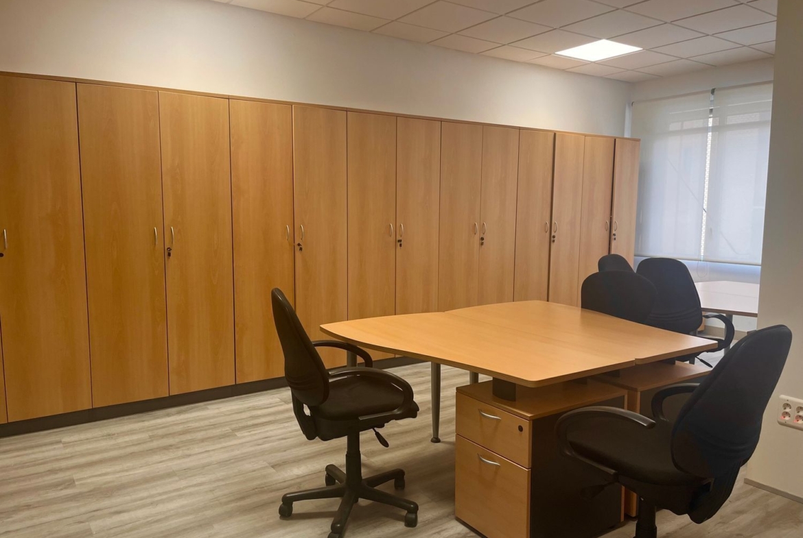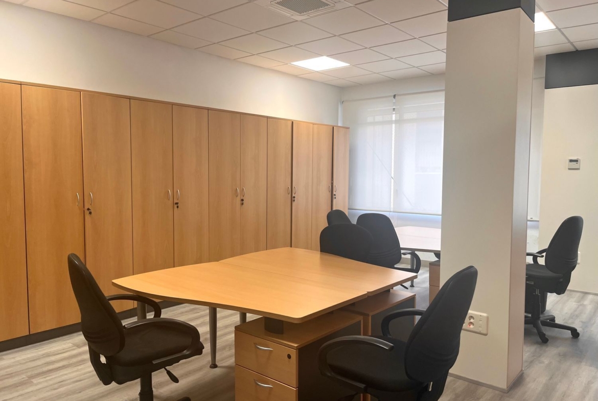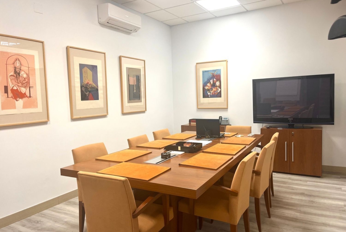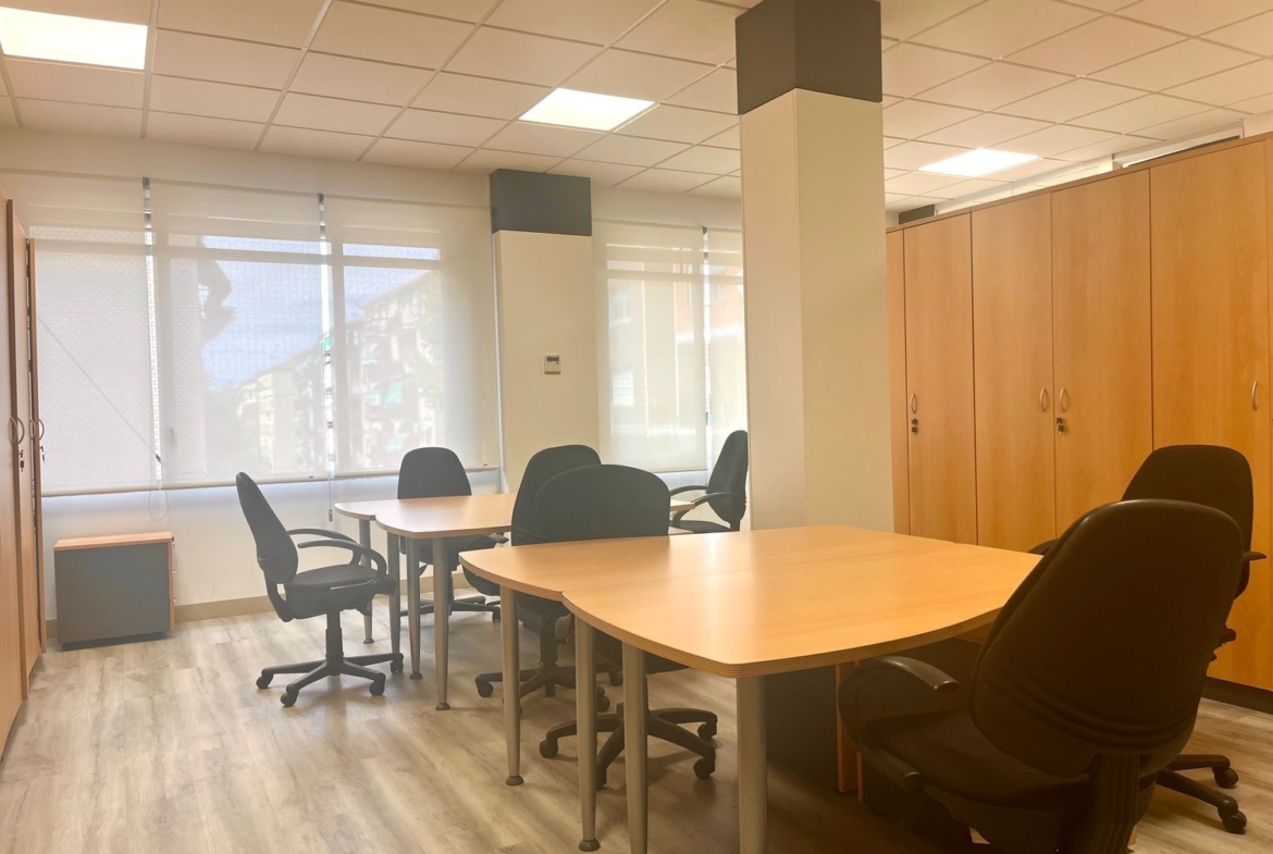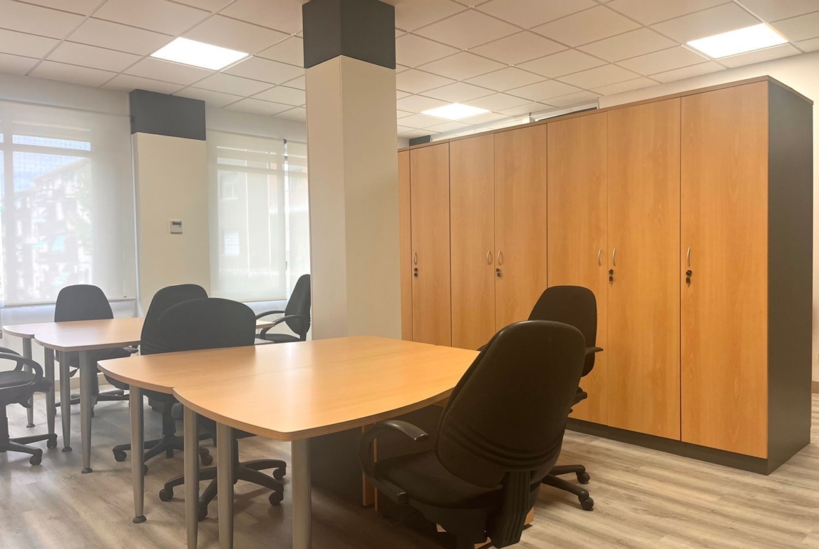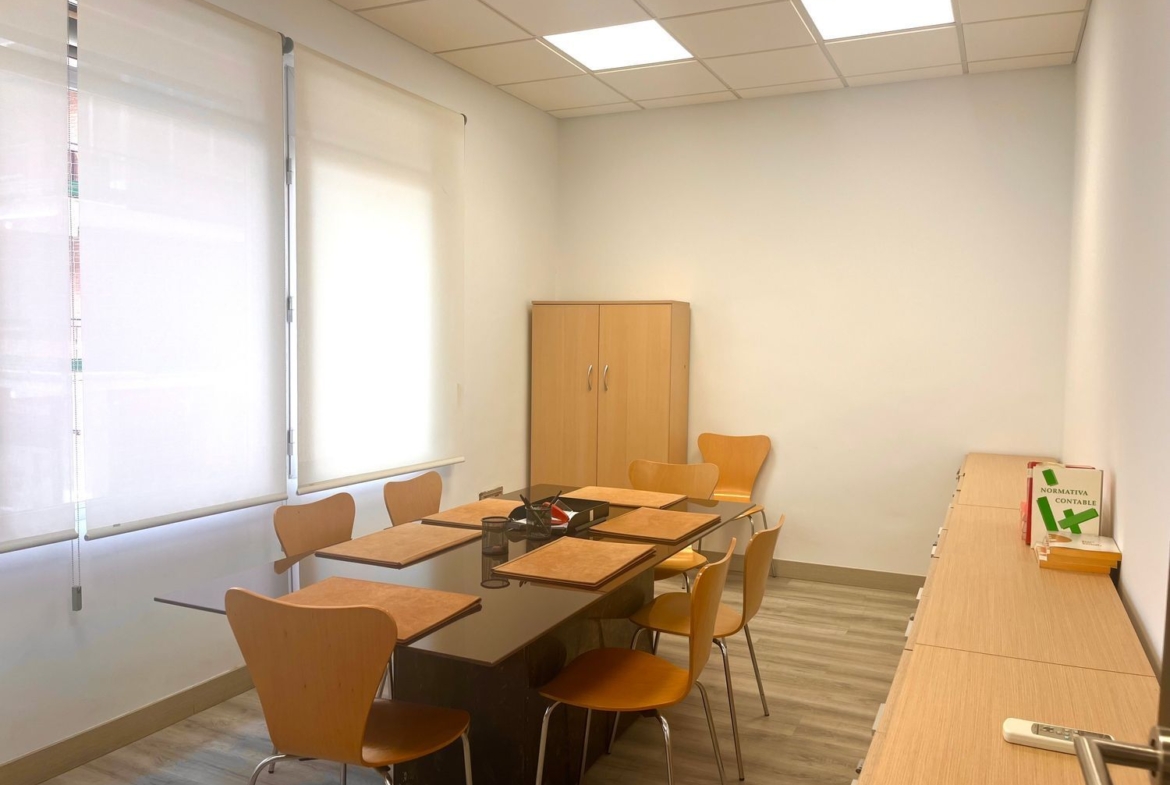 El espacio se alquila totalmente amueblado, con buenas calidades, aire acondicionado y todo lo necesario para empezar a trabajar desde el primer día. Dispone de sala de juntas, dos despachos diferenciados archivo, un pequeño office y un cuarto de baño. Uno de los despachos es abierto y funcional, ideal para el trabajo dinámico en equipo; y otro privado, perfecto para reuniones más reservadas o tareas que requieran concentración.