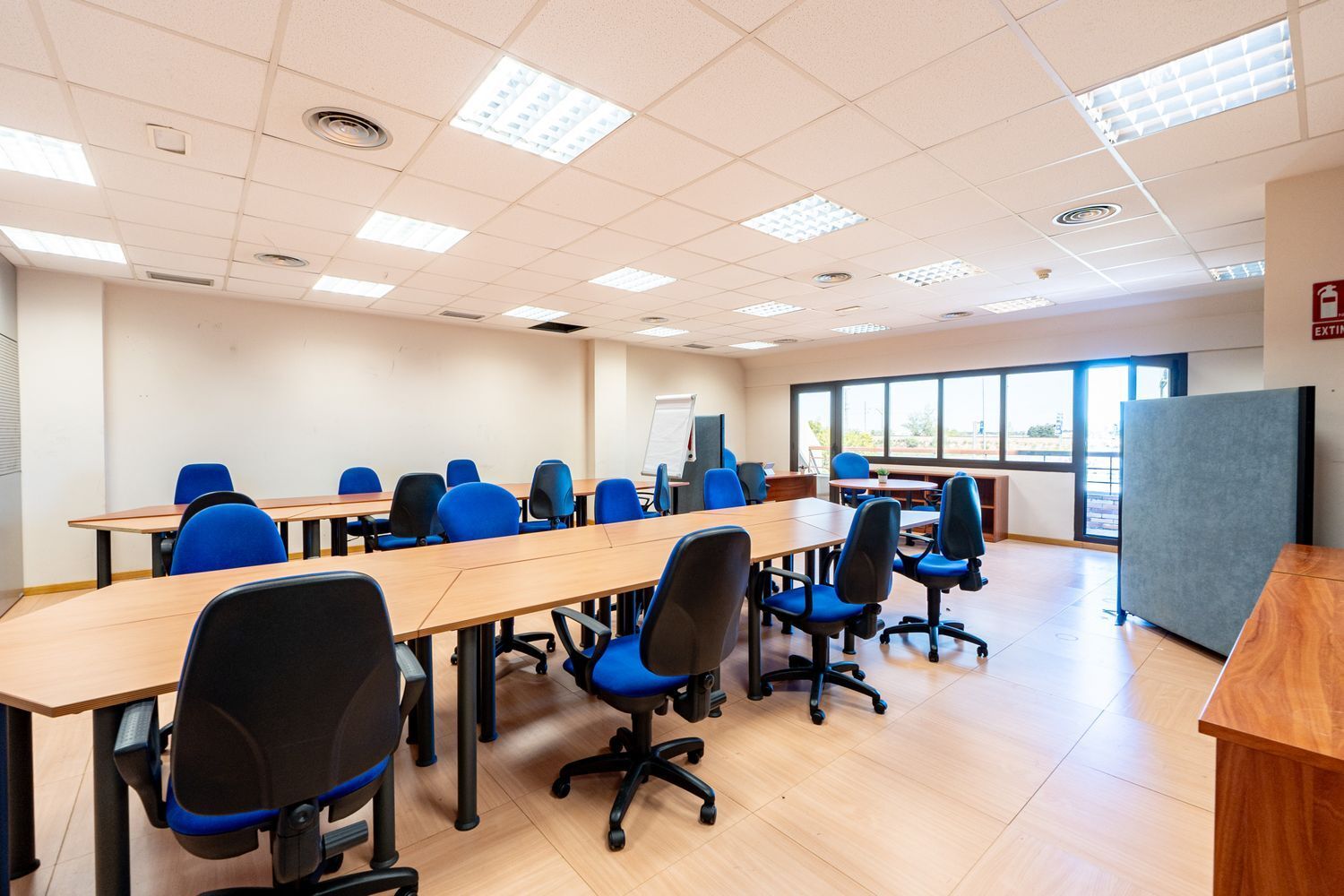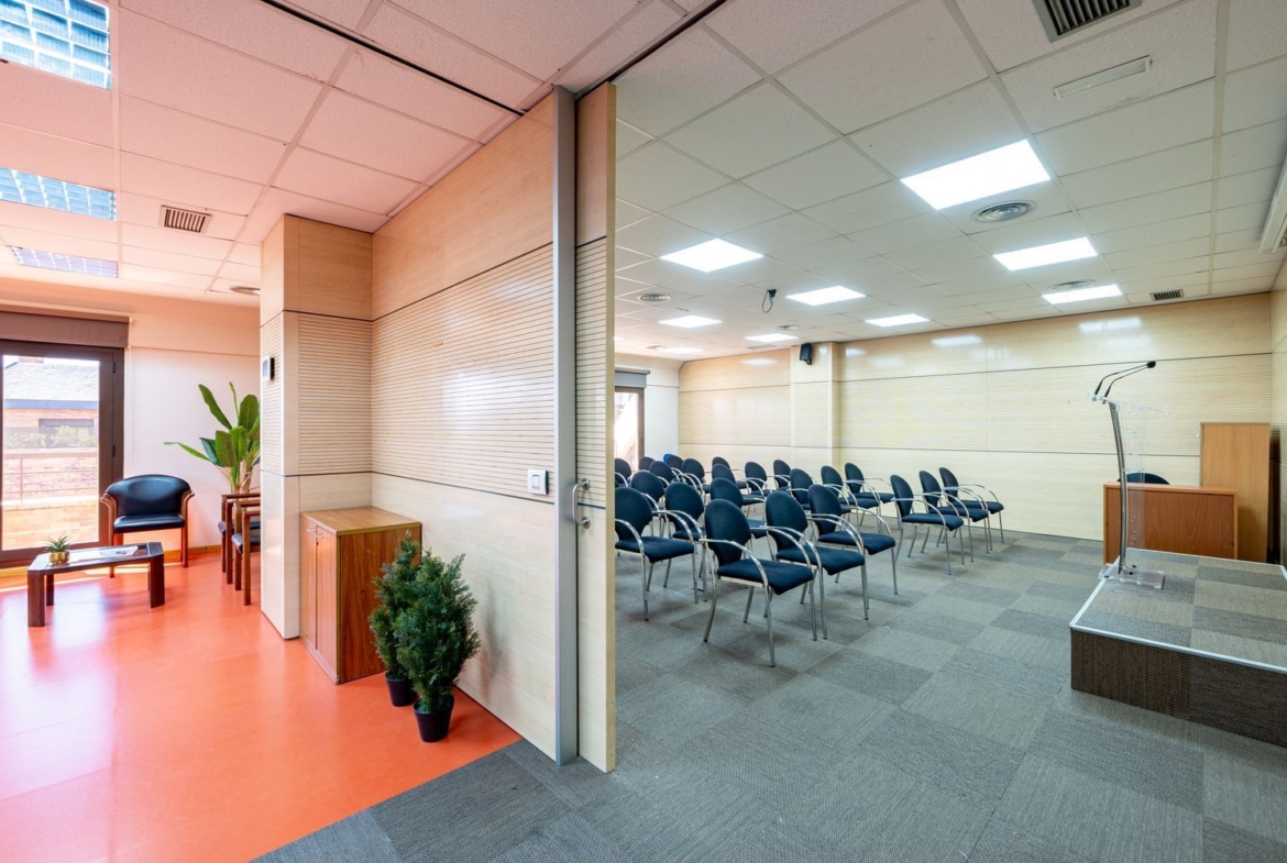 Estupenda y moderna oficina, que unifica ergonomía y diseño, además de tener un encanto muy especial, ya que todas sus estancias están comunicadas entre sí por terrazas con bonitas y despejadas vistas, perfectas también para presentaciones de empresa o eventos corporativos.