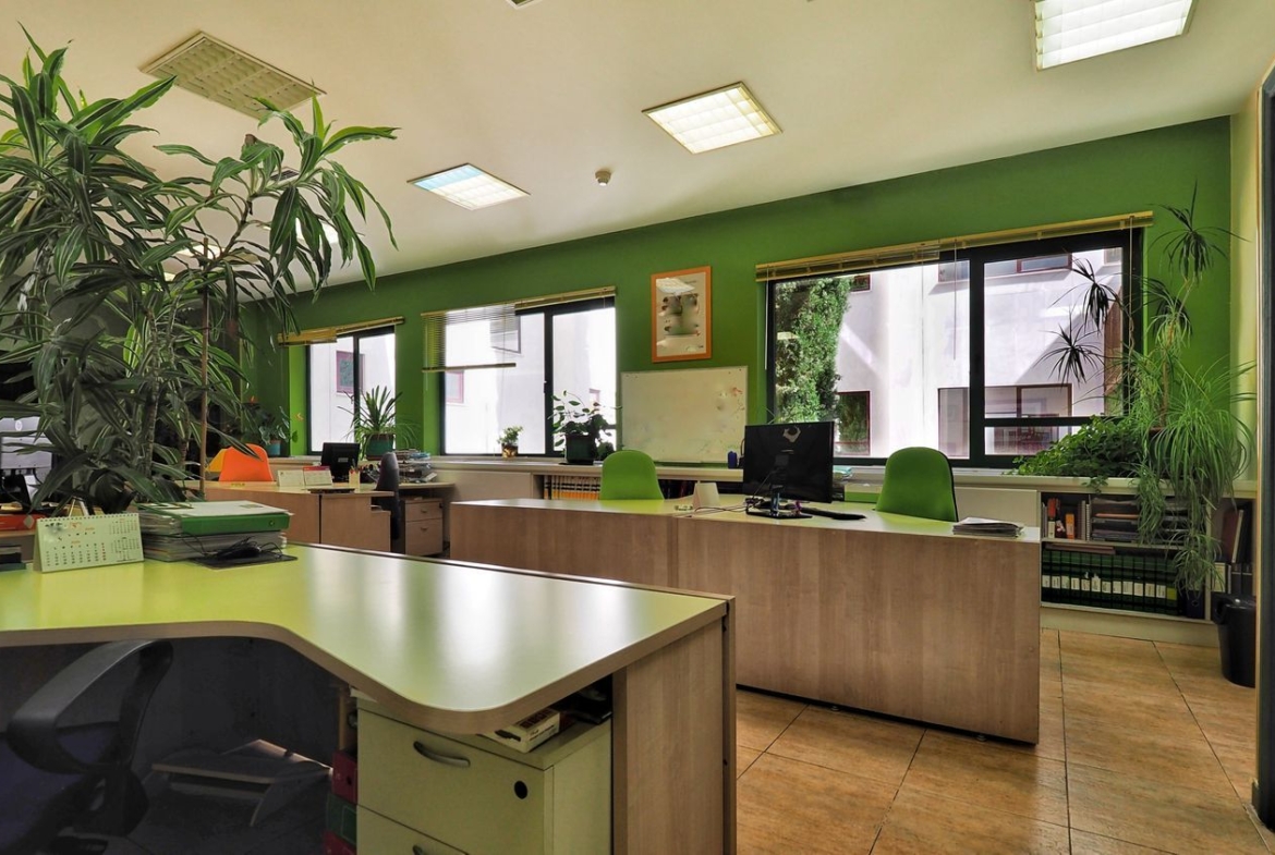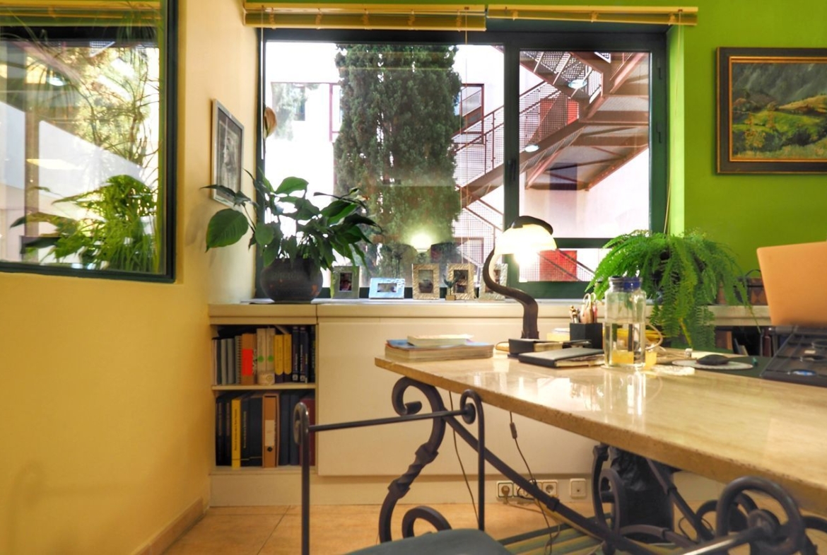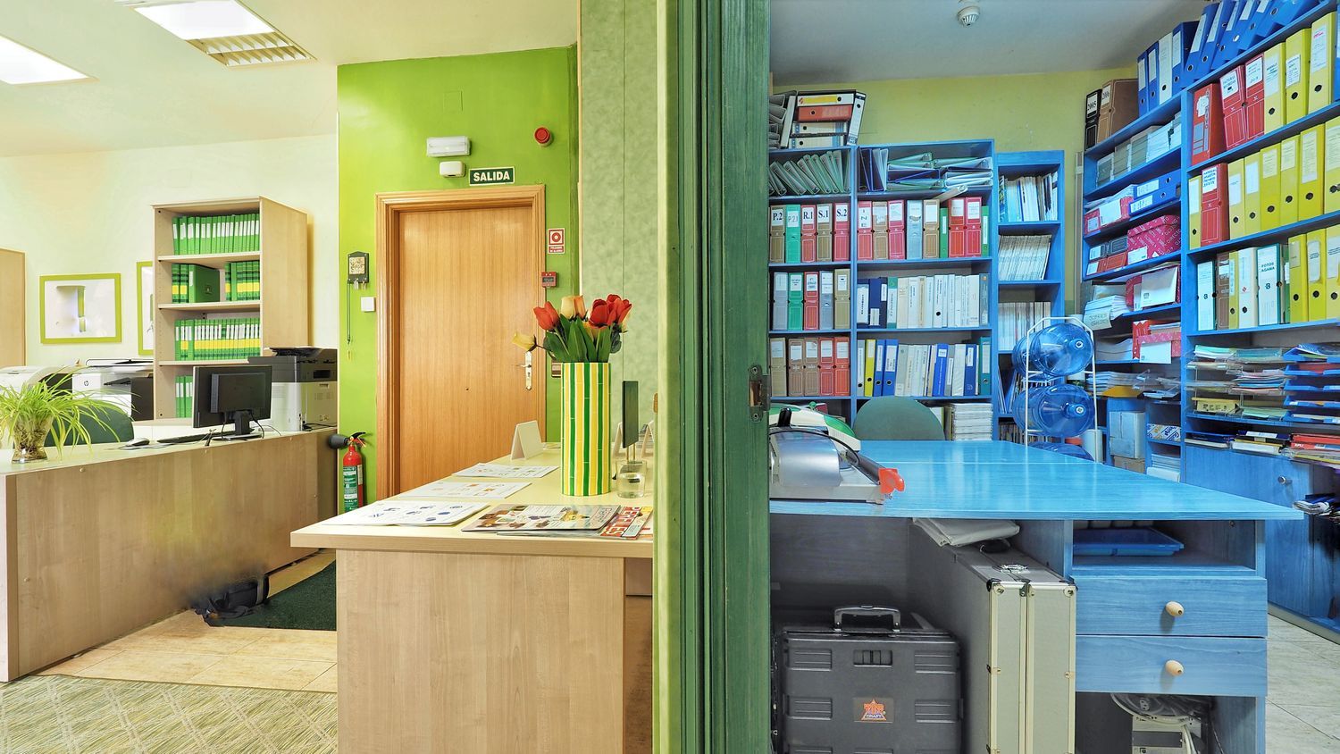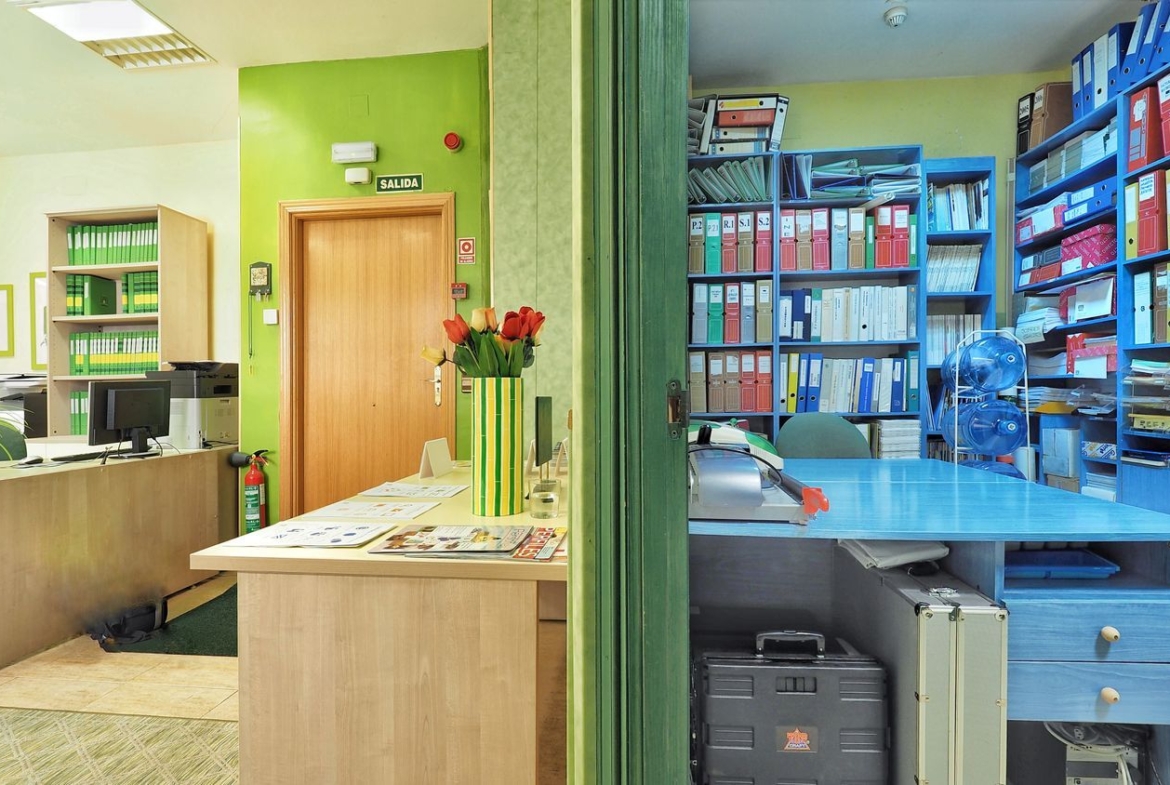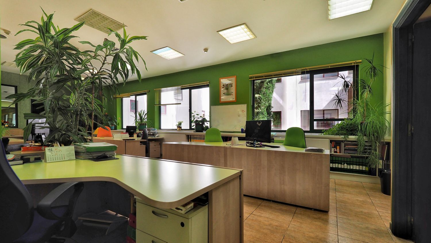 La oficina en la actualidad está dividida en una gran sala central de trabajo, que sirve de distribuidor para 2 despachos y una sala de reuniones.