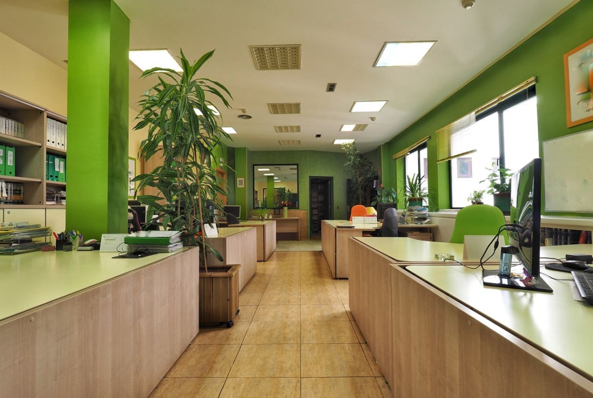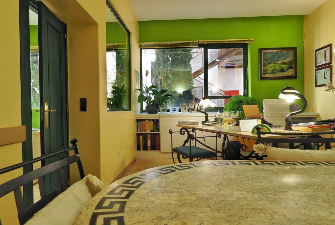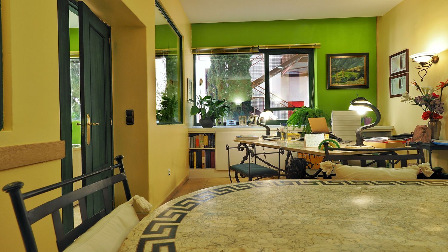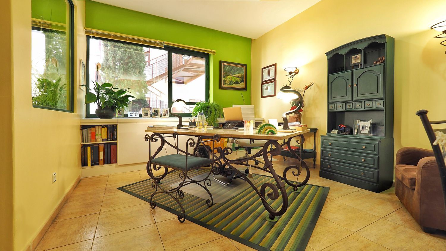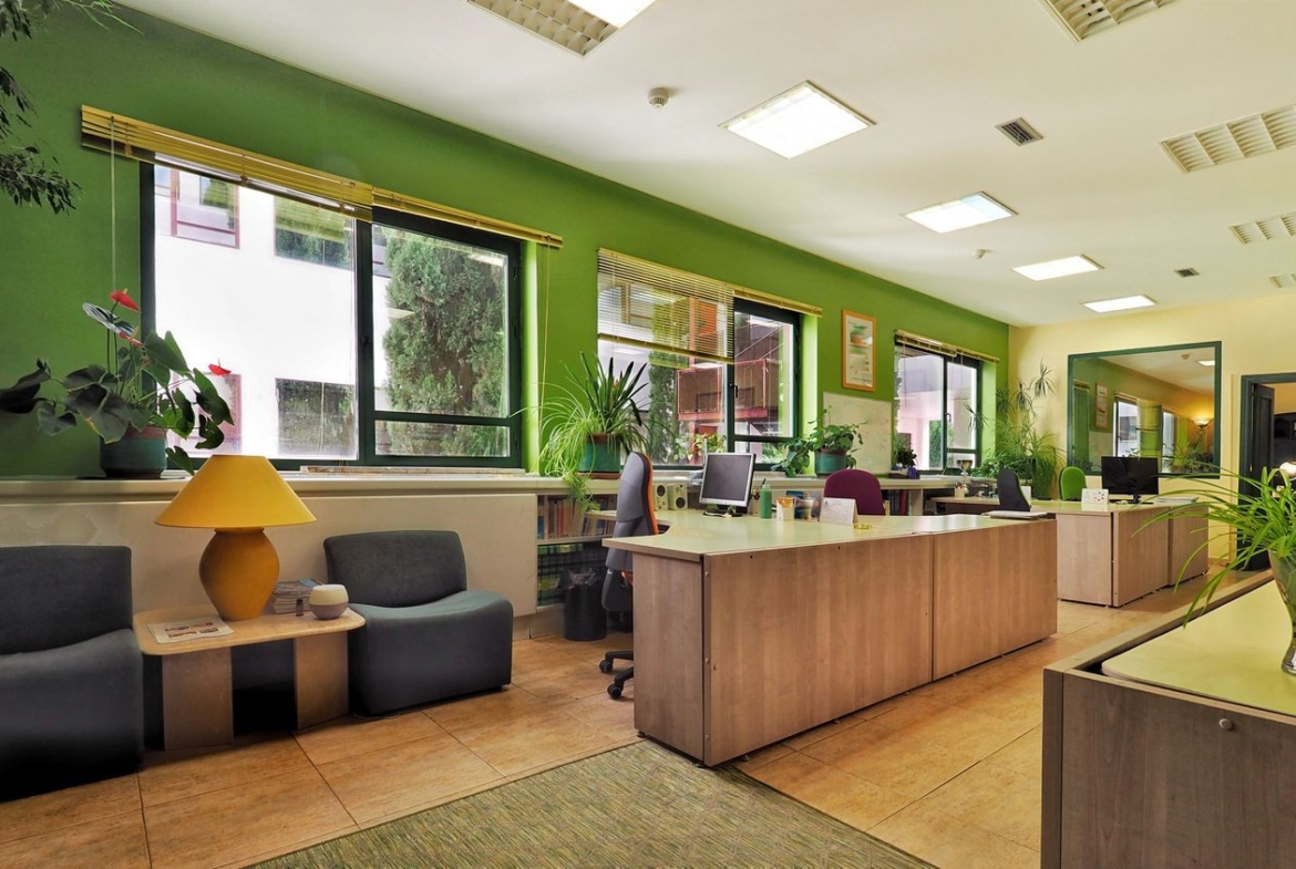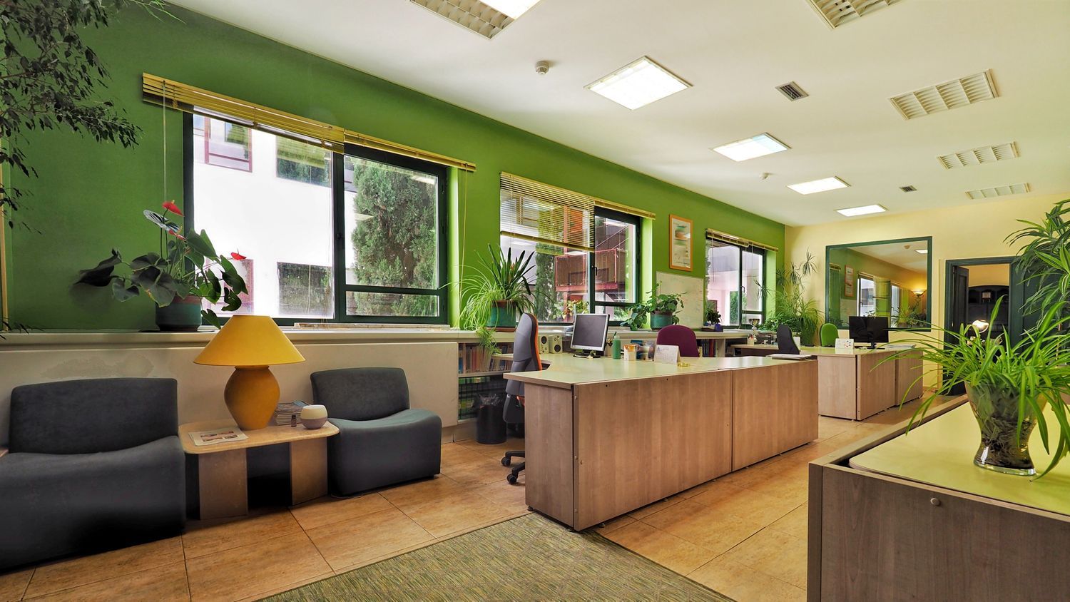La oficina en la actualidad está dividida en una gran sala central de trabajo, que sirve de distribuidor para 2 despachos y una sala de reuniones.