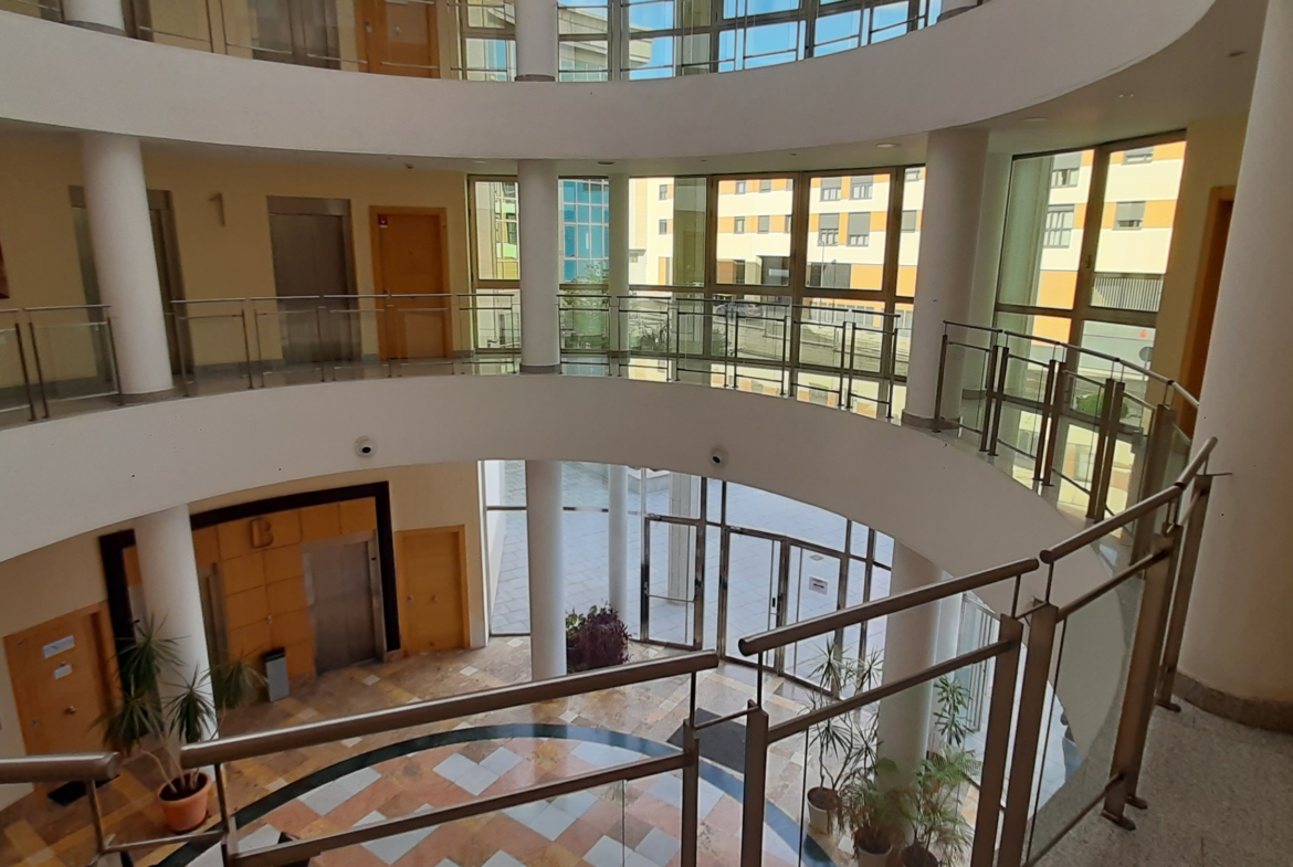 Edificio Altagracia: Construido en 2007, ofrece un entorno exterior impactante y elegante. Con una ubicación suroeste, su entrada puede ser independiente por la calle o por el Hall Principal, con control de acceso gracias a su conserje, vigilancia 24 horas y cámaras de seguridad. Además, cuenta con cafetería y máquinas vending en el mismo edificio. Dispone de 4 ascensores, dos en cada ala del edificio, para mayor comodidad.