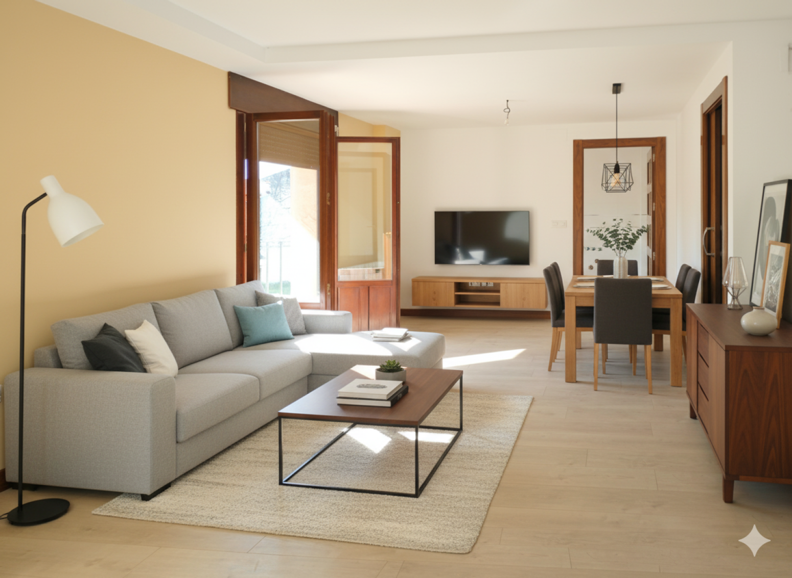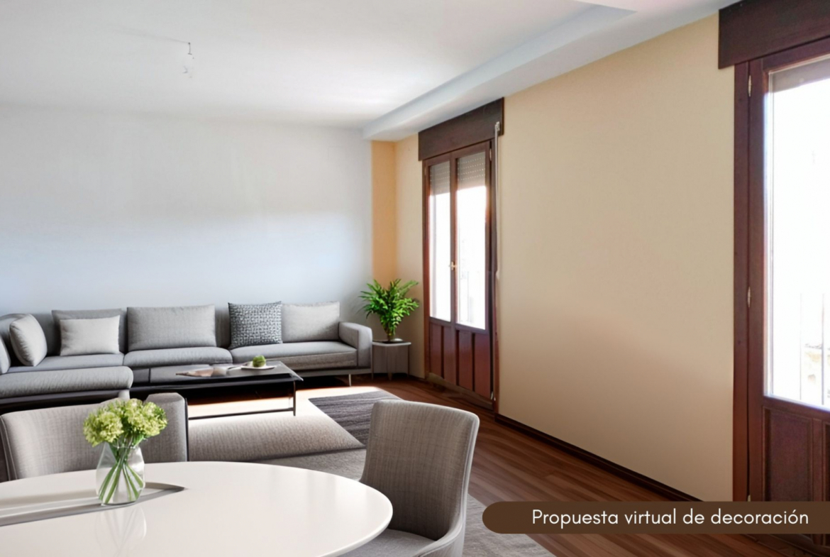 Un salón comedor muy luminoso, con dos balcones y espacio para crear diferentes ambientes.