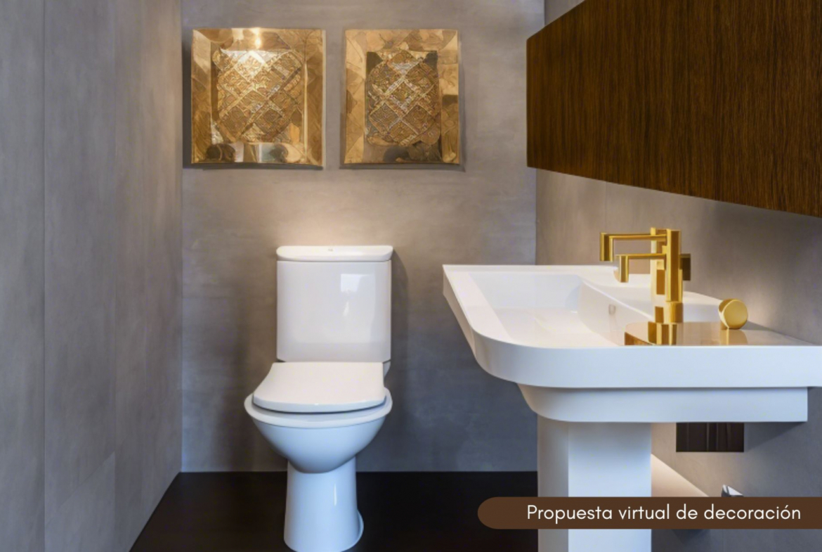 1 baño completo con plato de ducha y 1 aseo de cortesía.