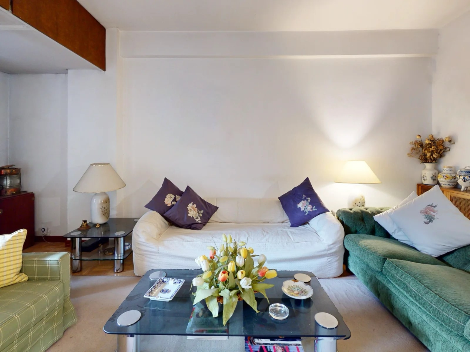 En la zona de descanso se encuentran actualmente 3 dormitorios y dos baños. El dormitorio principal es amplio y luminoso, contando con armarios empotrados, junto a él se sitúa el baño principal equipado con bañera y bidé.