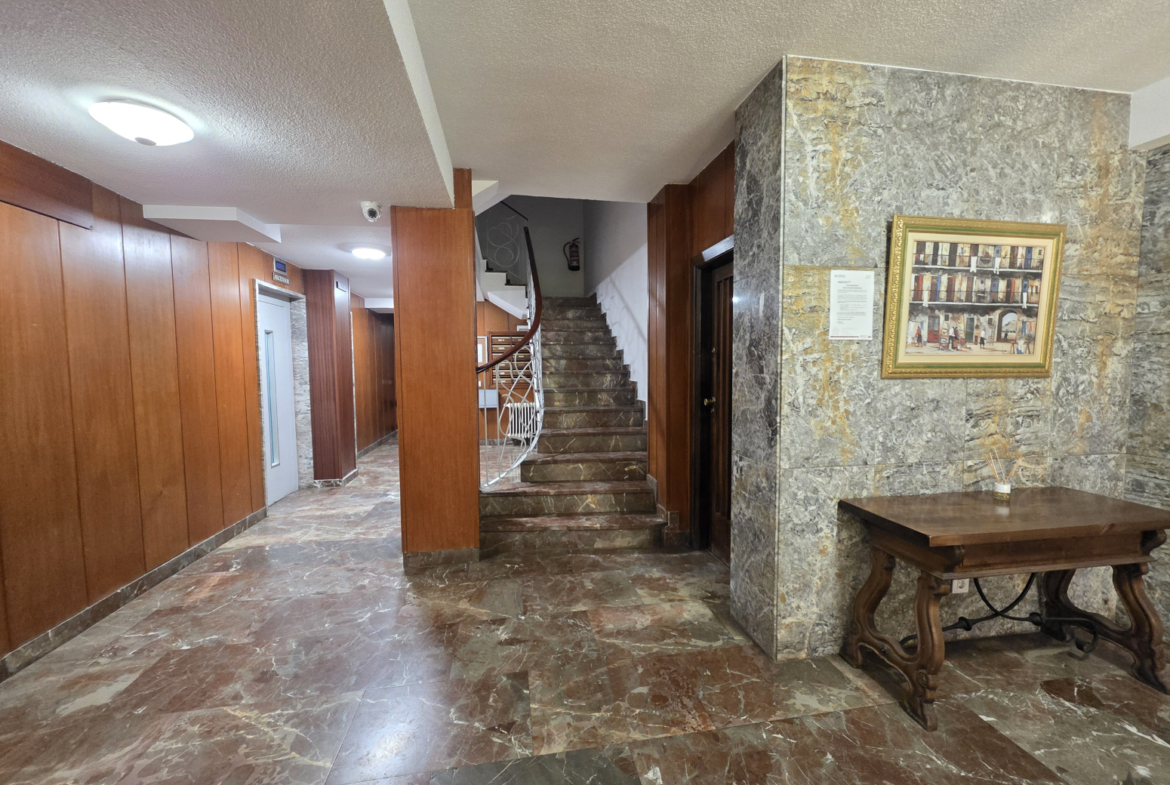 Situado en un edificio construido en 1974, este piso ha sabido adaptarse al paso del tiempo ofreciendo múltiples mejoras sin perder su encanto original.