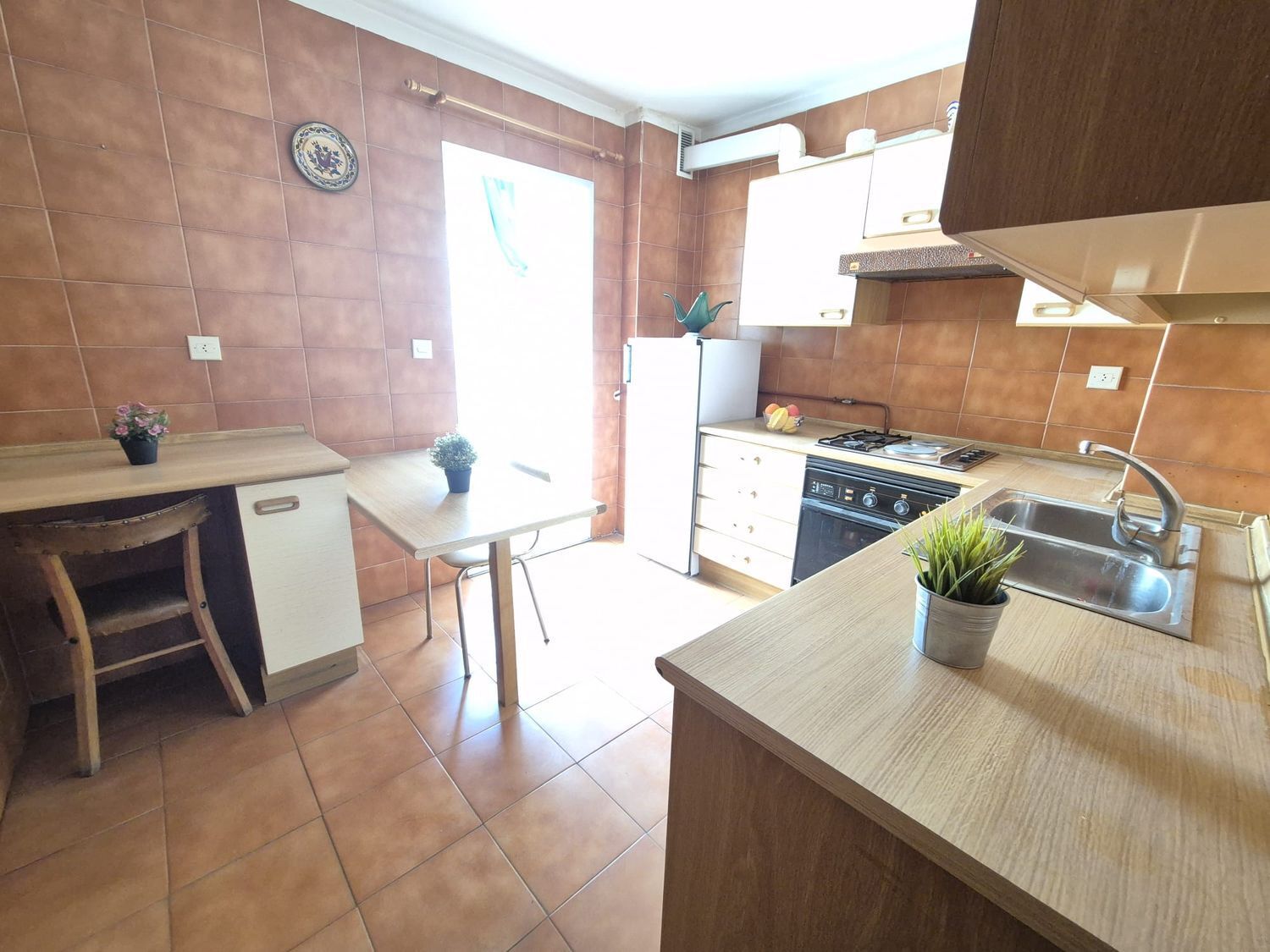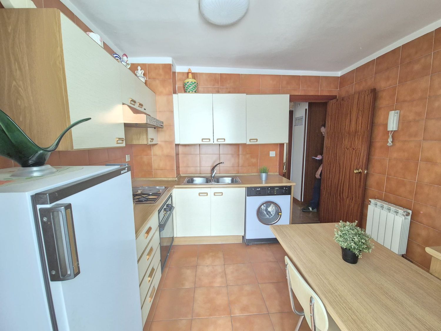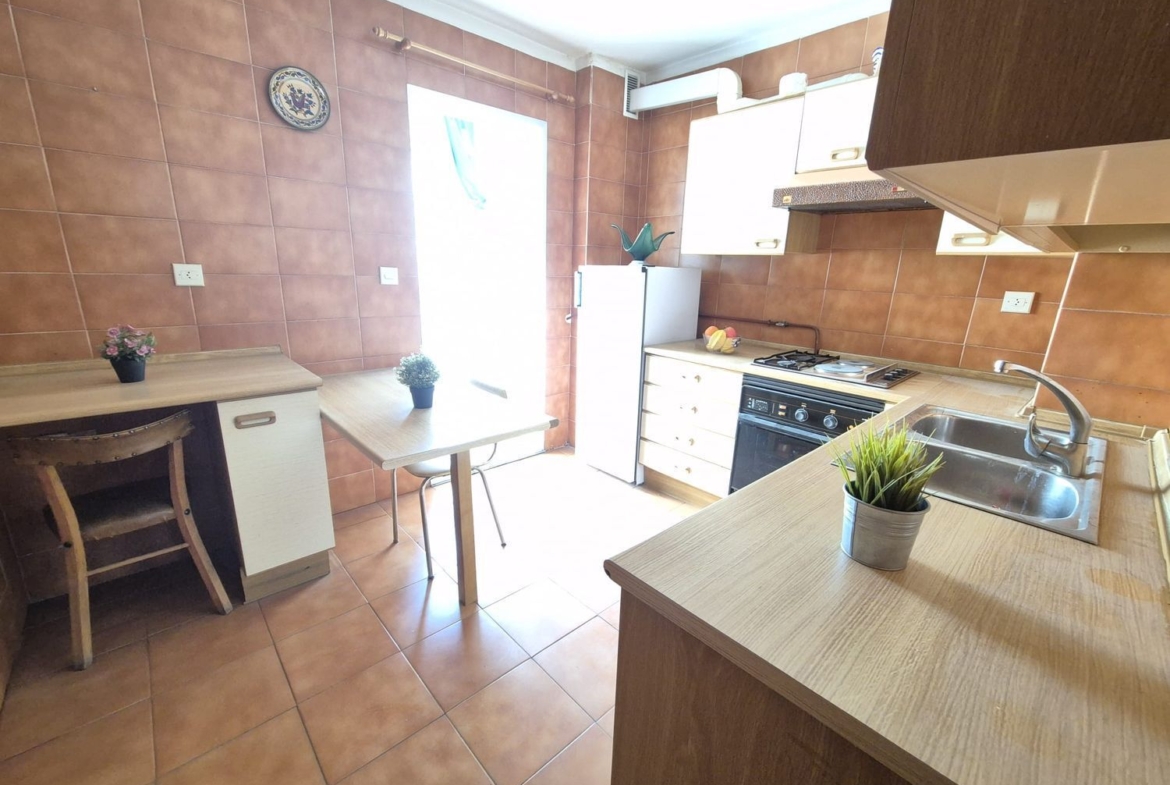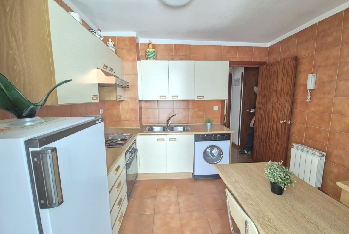 La cocina, amplia y funcional, destaca por su excelente distribución y su mobiliario de gran capacidad tanto en la parte alta como baja. Cuenta además con un práctico tendedero cerrado que amplía aún más el espacio disponible, ideal para almacenaje extra o zona de lavado.