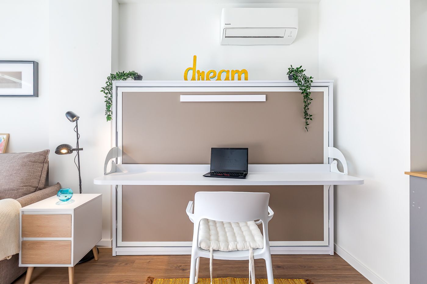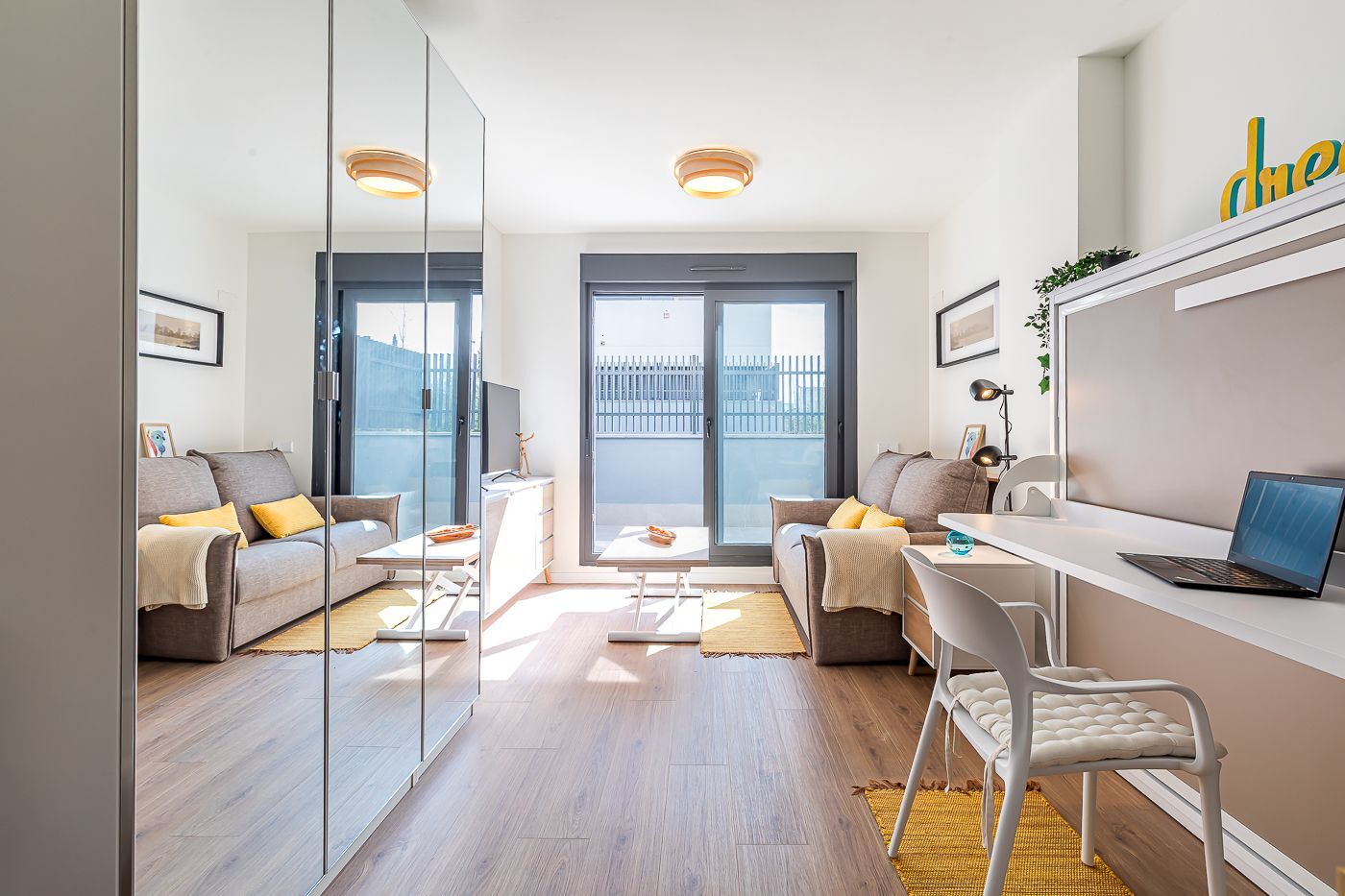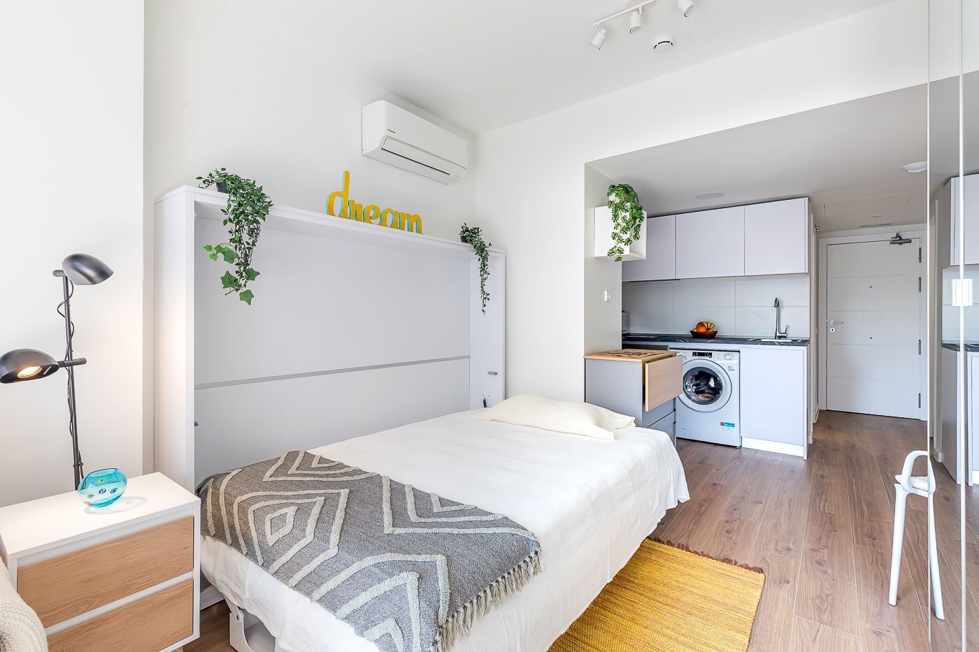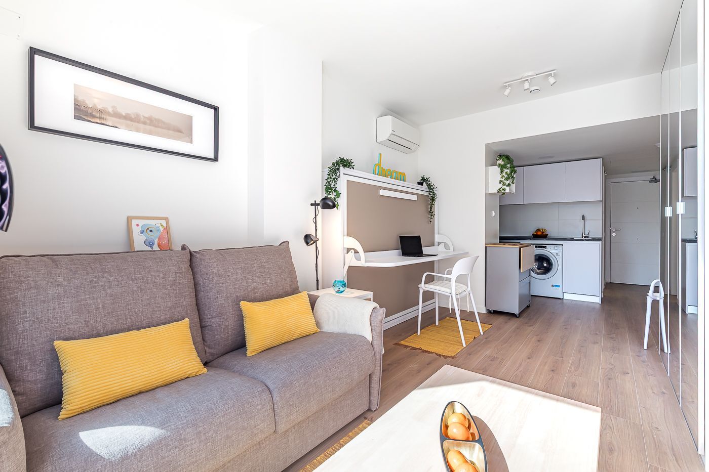 Vivienda-Estudio tipo Loft en Urbanización cerrada de Lujo, a estrenar, distribuida en un único espacio multifuncional, con un amueblamiento único incluido en el alquiler que permite su utilización como zona de día, de trabajo o de noche. Cocina completamente equipada y amplia terraza.