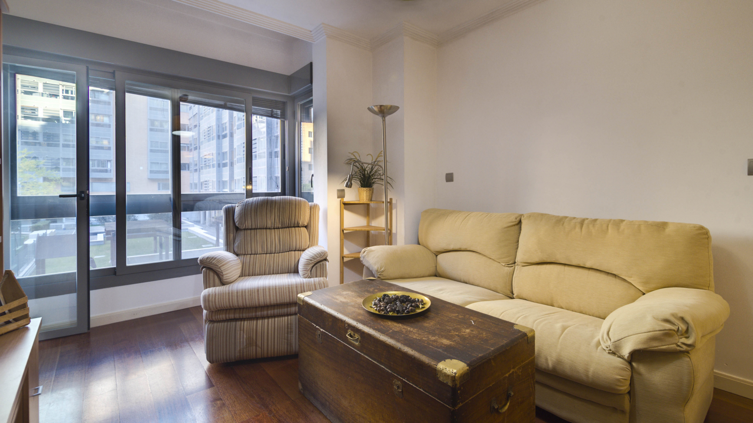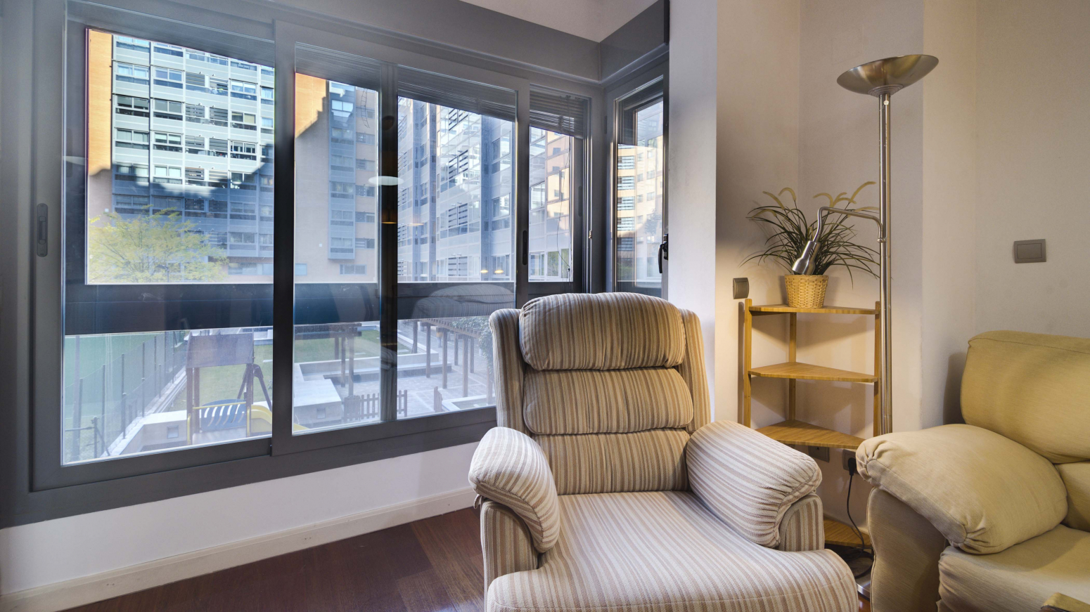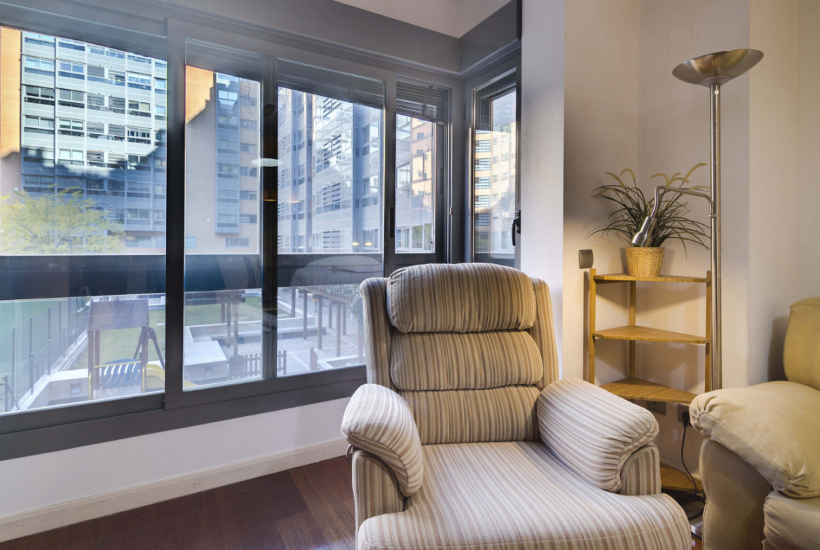Desde la cocina, volvemos al recibidor para ir ahora a la zona de las habitaciones en la que encontramos un baño completo con plato de ducha que da servicio a uno de los dormitorios pues el principal dispone de baño y vestidor. Las dos habitaciones son muy amplias con ventanas grandes que dan a un parque por lo que las vistas son muy despejadas.