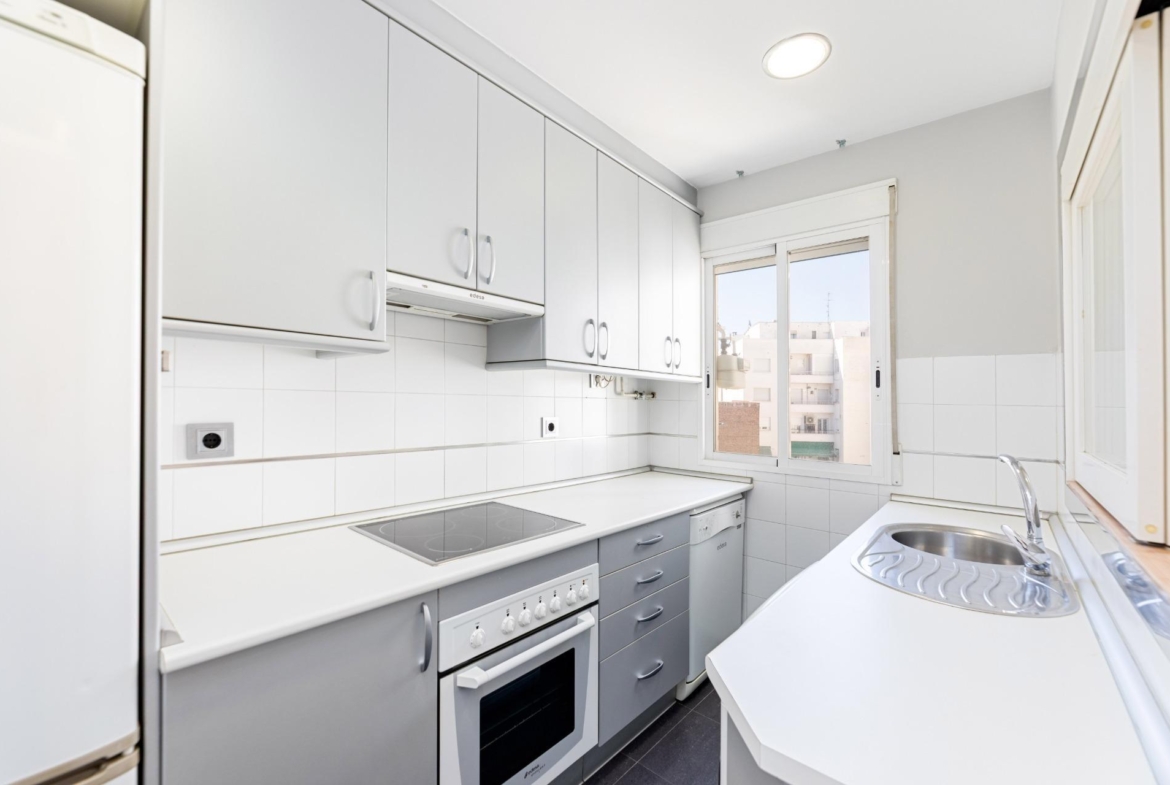 El apartamento cuenta con dos amplias habitaciones dobles que ofrecen comodidad y espacio adicional para el almacenamiento gracias a sus grandes armarios empotrados. Dispone también de un baño completo, cocina equipada ideal para los amantes del buen comer y climatización mediante calefacción centralizada y aire acondicionado para garantizar su confort durante todo el año.