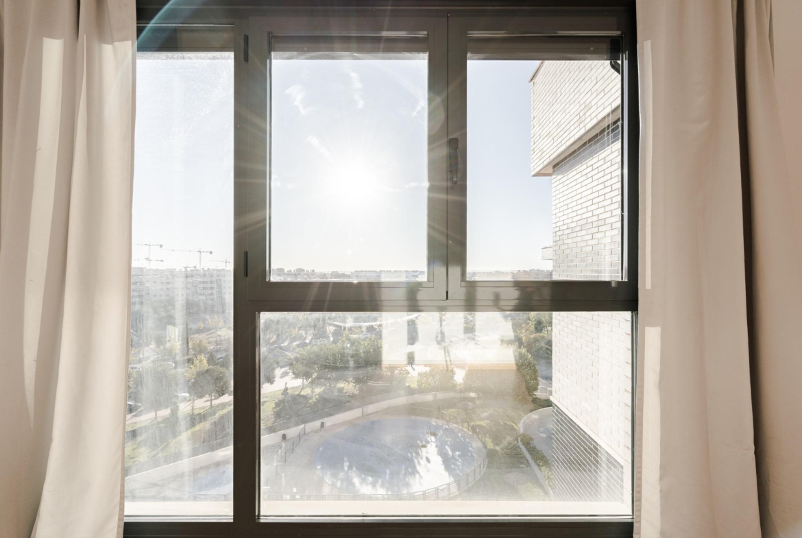 En cuanto al confort: aire acondicionado por conductos para que el clima interior se adapte sin interrupciones, y un toldo en el salón para controlar la luz cuando necesites calma o descanso. ¿El suelo? Tarima flotante en toda la vivienda para dar sensación cálida y elegante (excepto cocina y baños, que llevan gres, una opción práctica y fácil de mantener). Las puertas de paso son de haya, la puerta de entrada es blindada (más seguridad = más tranquilidad), y las paredes están en liso gris perla, un tono neutro que invita a personalizar.