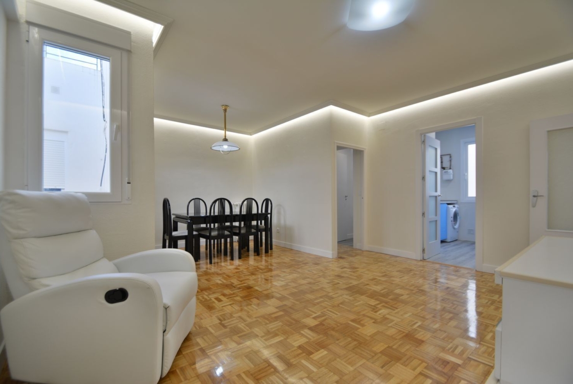 Amplia vivienda de 3 dormitorios y 2 baños completos totalmente reformada, a estrenar. Ubicada en la sexta y última planta del edificio, con muchísima luz natural. Tiene ventanas a 2 patios, doble orientación Este ? Oeste. Ideal 3 estudiantes o jóvenes profesionales para compartir.