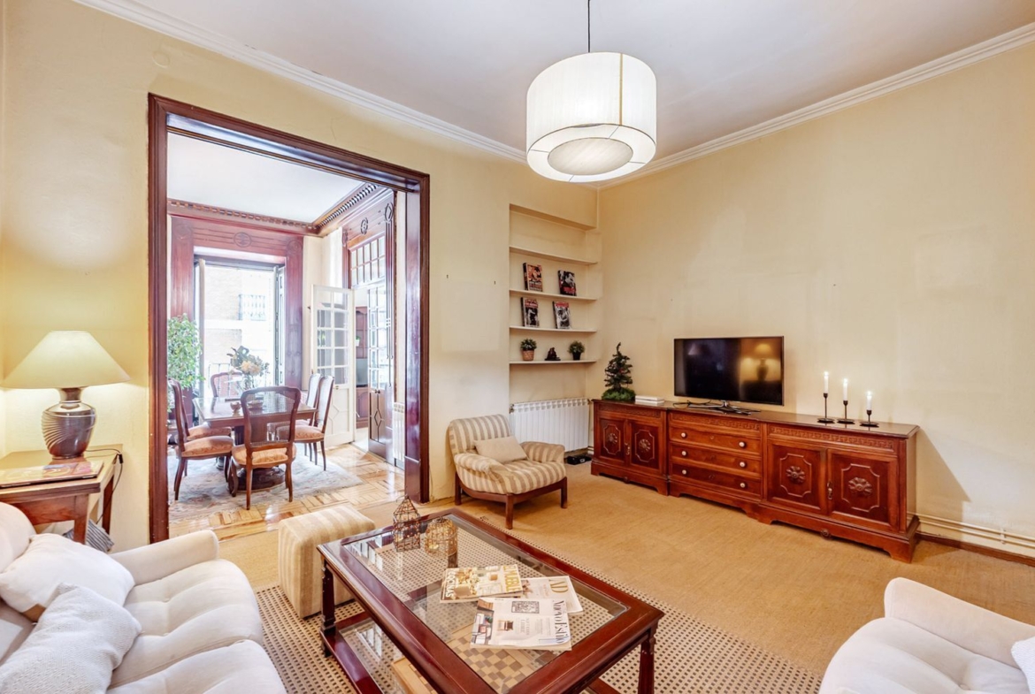 Situada en una FINCA CLÁSICA REPRESENTATIVA, con ITE FAVORABLE y FACHADA REHABILITADA, este inmueble se ubica en una de las zonas de más alto standing, más seguras y demandadas de la capital.