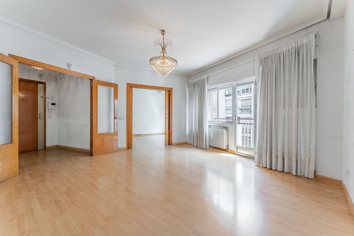 Este maravilloso inmueble está esperándote para convertirse en tu futuro hogar y transformar sus grandes espacios en rincones únicos para ti y tu familia. Este piso exterior ubicado en una segunda planta (con altura de tercero) dispone de 4 habitaciones con armarios empotrados, un enorme salón muy luminoso con un ventanal, cocina con su zona de tendedero, dos baños completos y una terraza donde poder disfrutar de las tardes y noches de verano en la capital. Cuenta con calefacción individual por gas natural.
