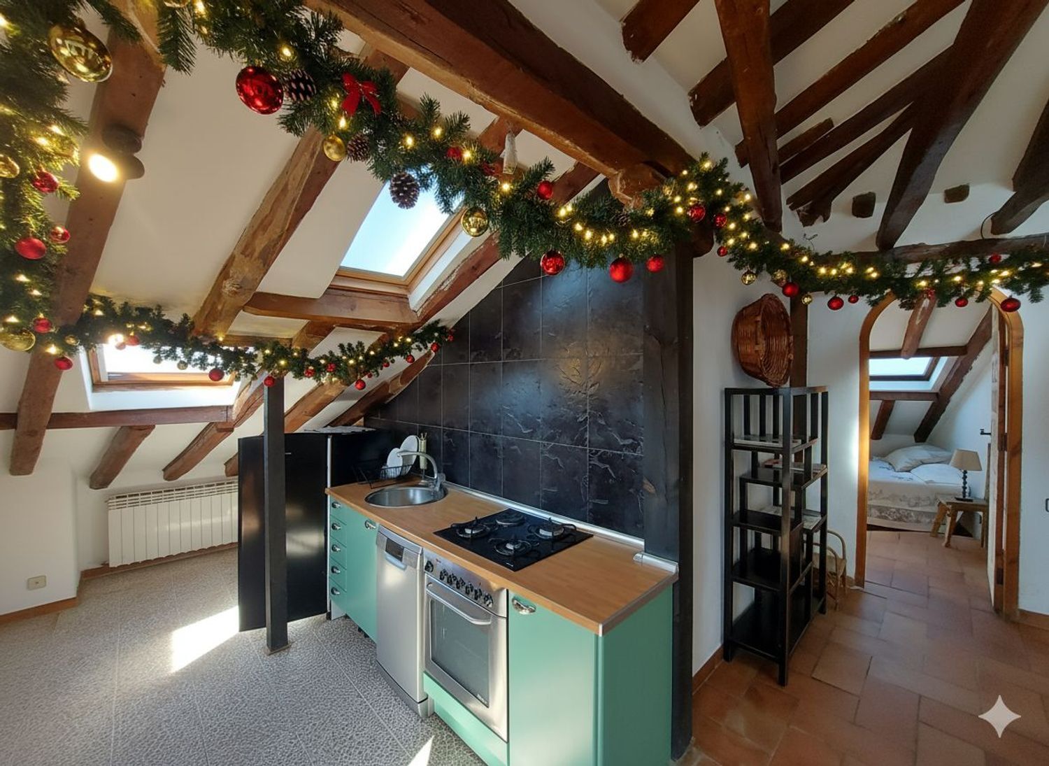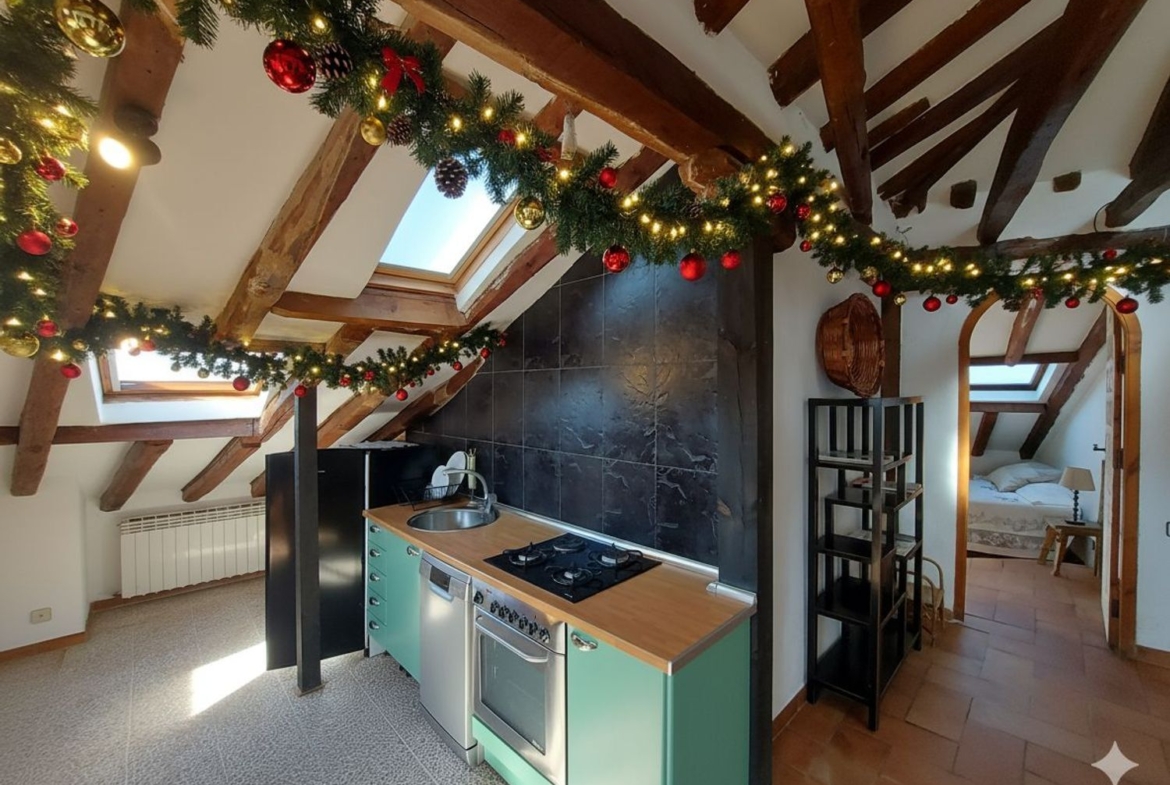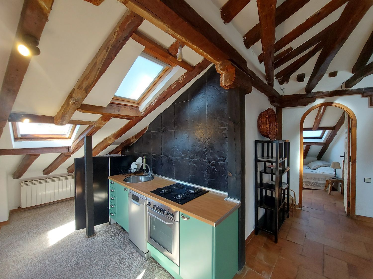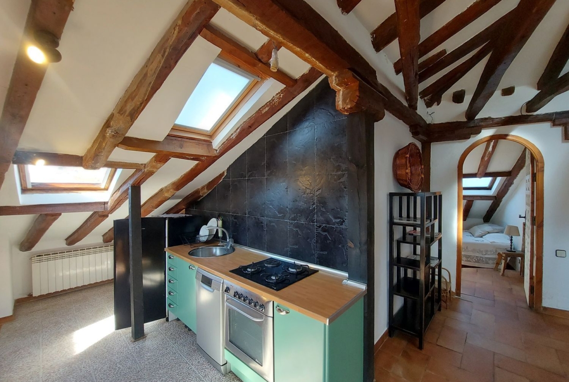 El ático se caracteriza por su luminosidad gracias a su orientación sur y las ventanas Velux que permiten la entrada de luz natural. Las vigas de madera en el techo y el suelo de barro aportan un estilo rústico que enamora a primera vista. Aunque necesita algunas reformas, su potencial es evidente. Además, al estar exento de IBI, es una oportunidad que no querrás dejar pasar.