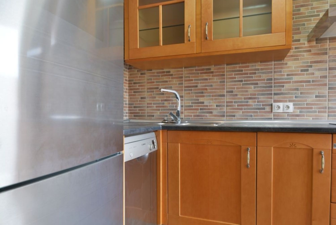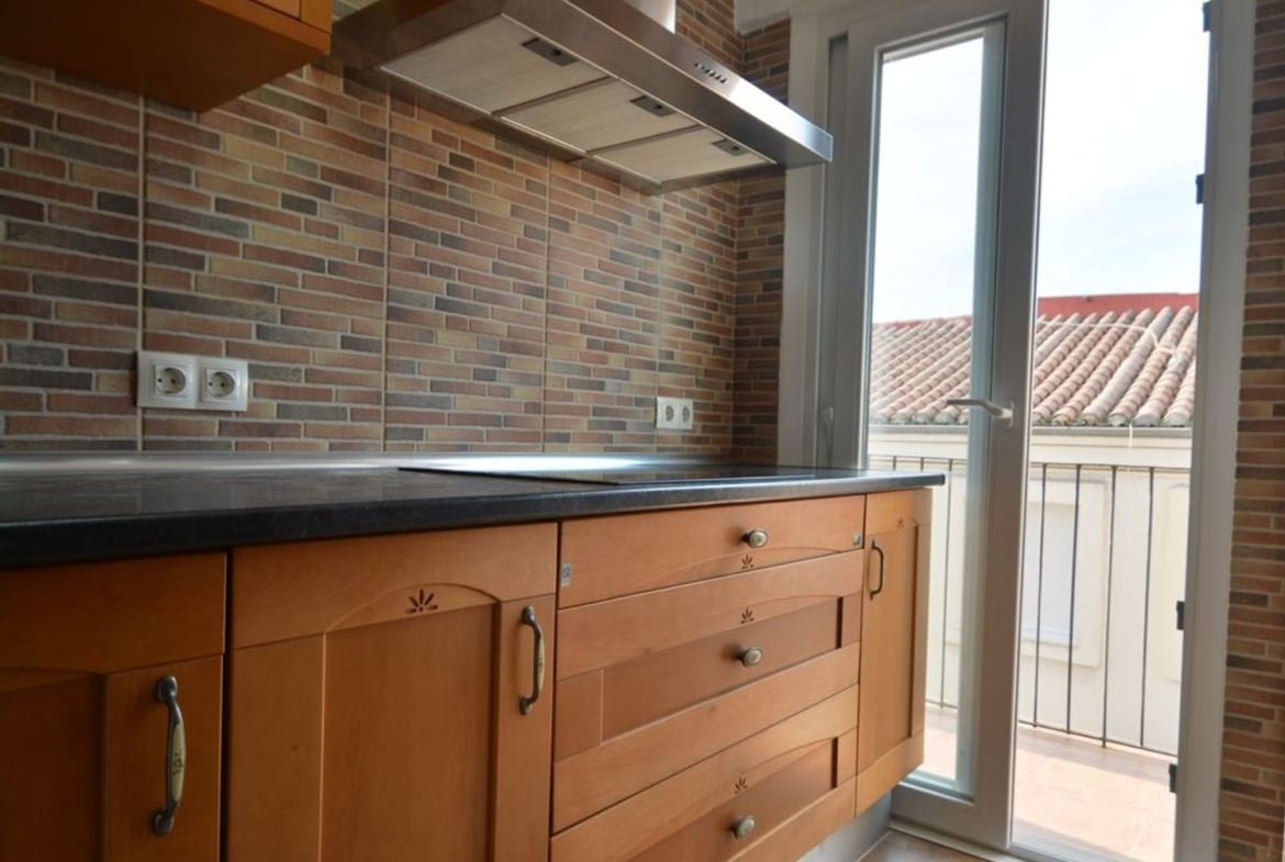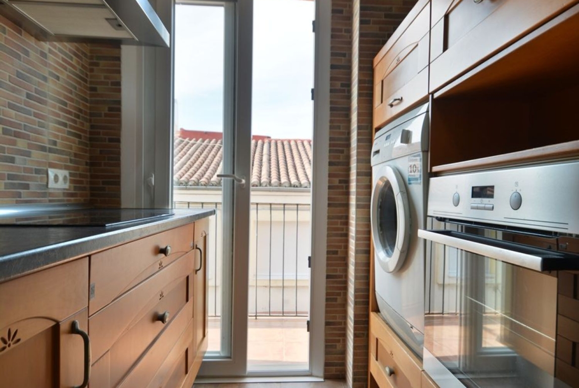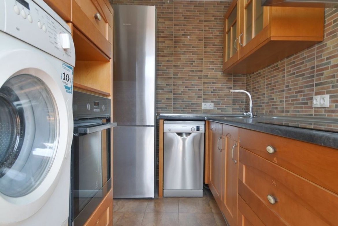 -Cocina independiente totalmente amueblada y equipada con todos los electrodomésticos y con salida a una bonita y soleada terraza.