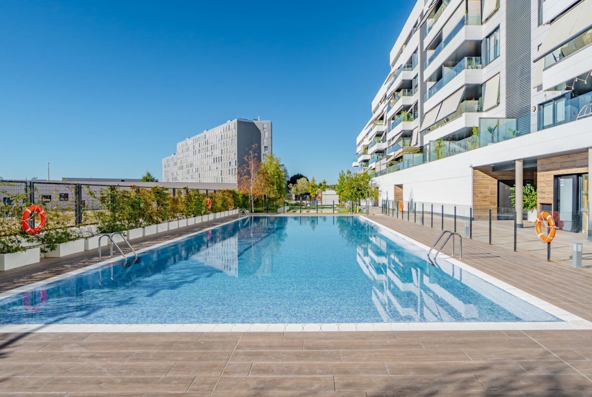 La urbanización tiene CONSERJE 24 HORAS, más de 2.500m2 de zonas ajardinadas, paseos de piedra y las mejores zonas de ocio de Valdebebas: