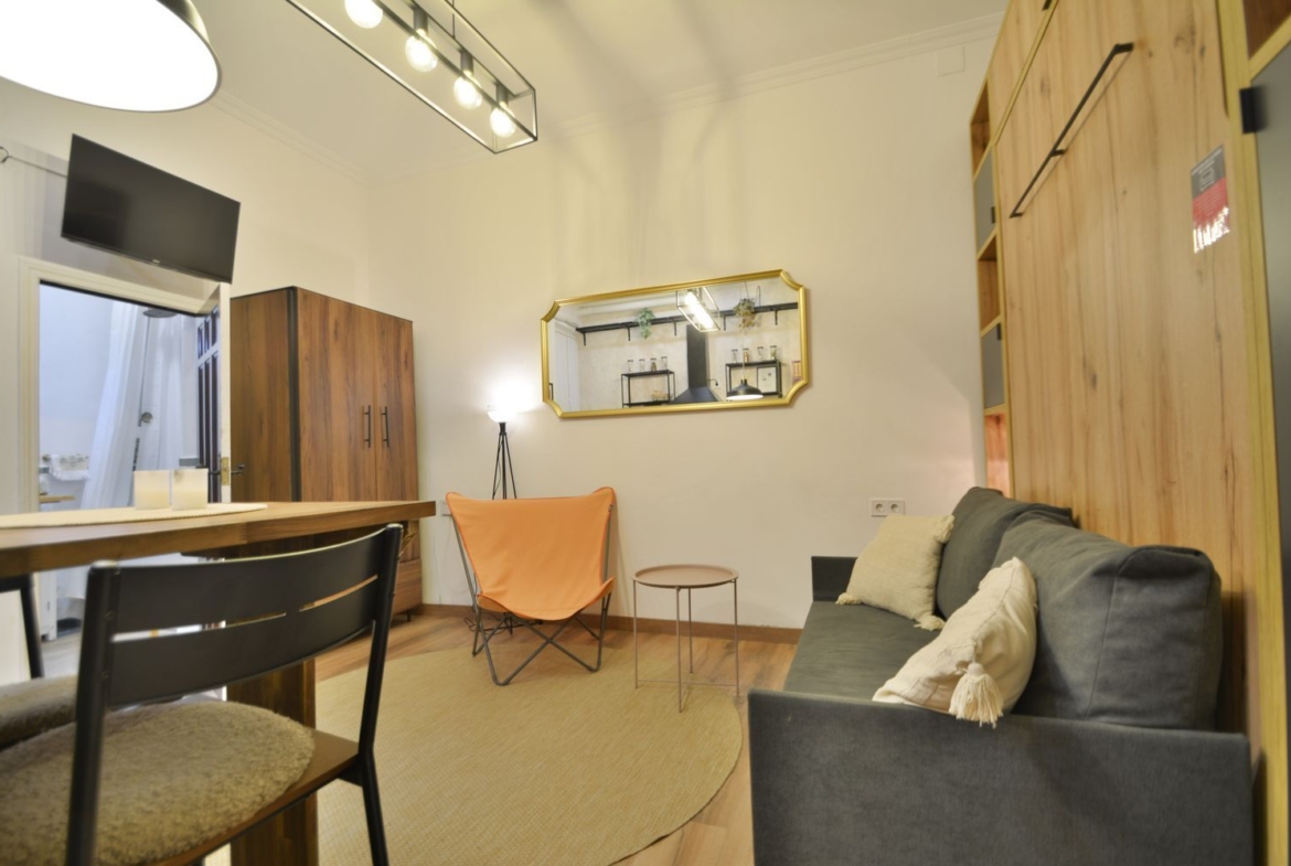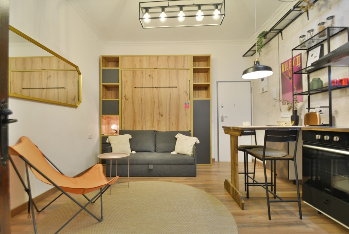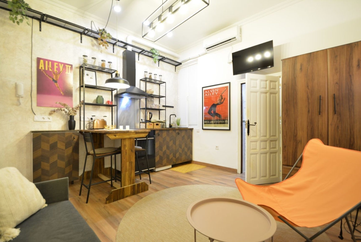 Estudio recién reformado a estrenar, en el castizo barrio de Lavapiés, junto a la Plaza de Agustín Lara y el Metro de Lavapiés. Sólo disponible para estancias de alquiler temporal no turístico.