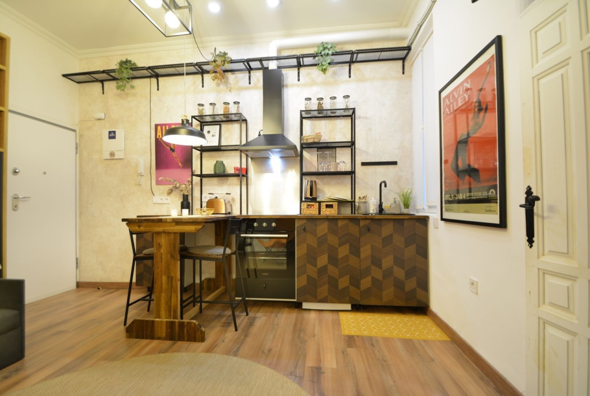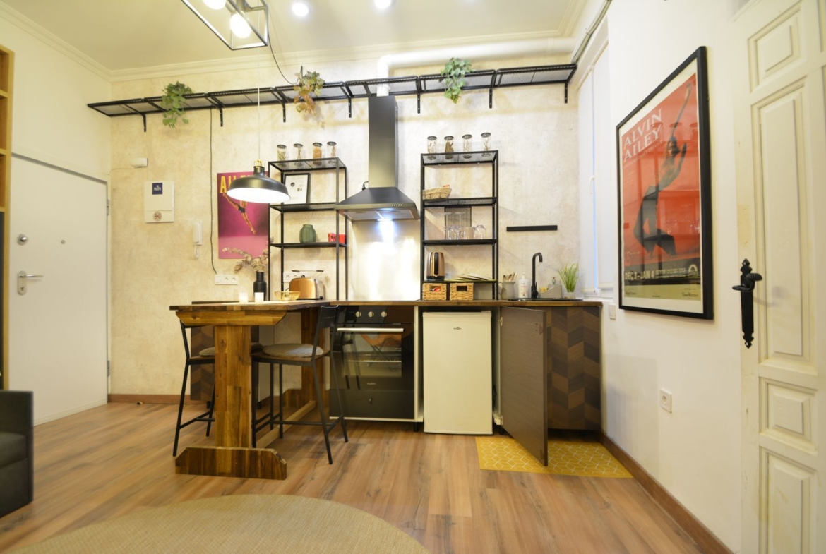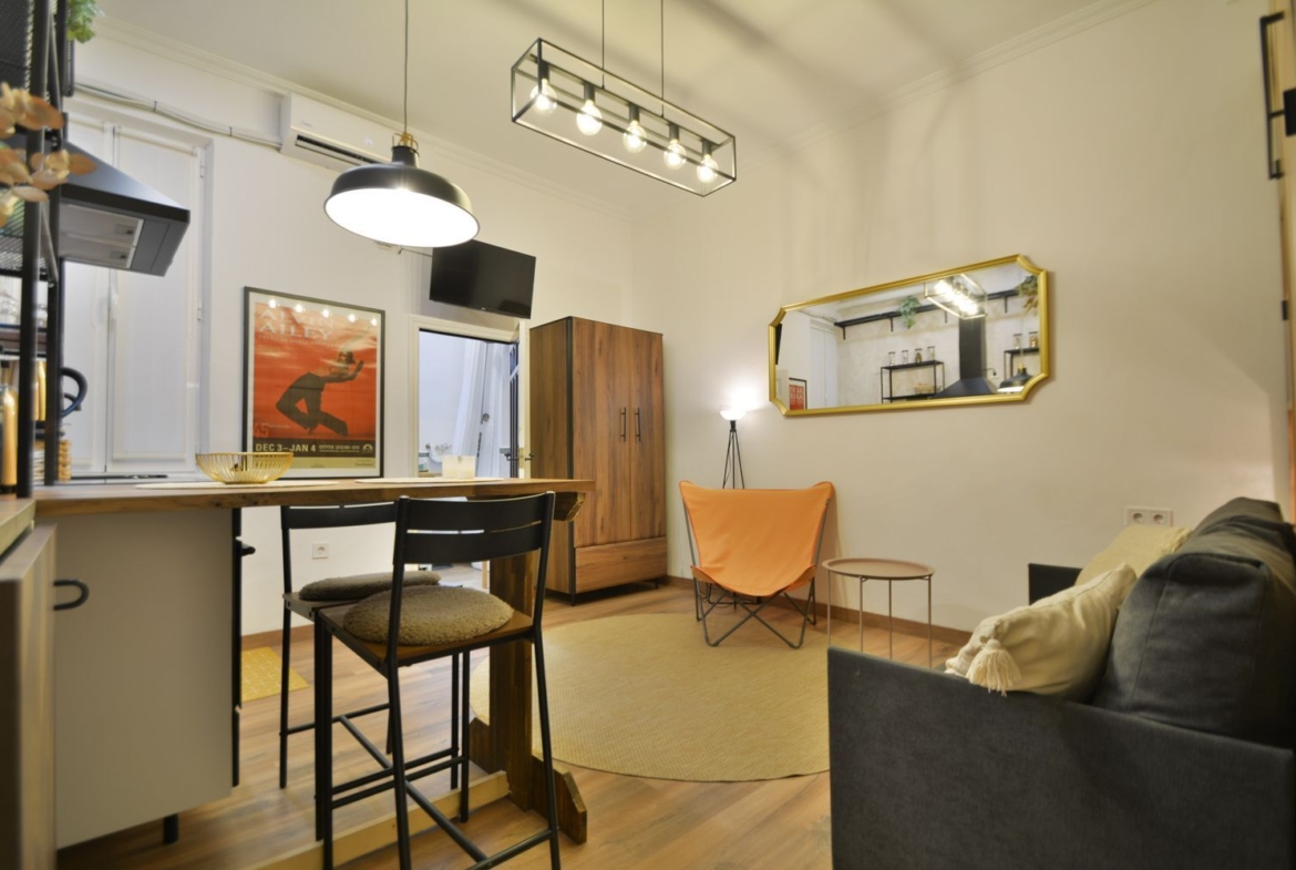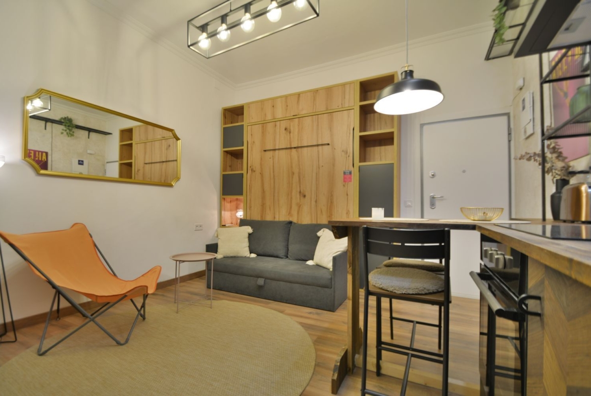 Estudio recién reformado a estrenar, en el castizo barrio de Lavapiés, junto a la Plaza de Agustín Lara y el Metro de Lavapiés. Sólo disponible para estancias de alquiler temporal no turístico.