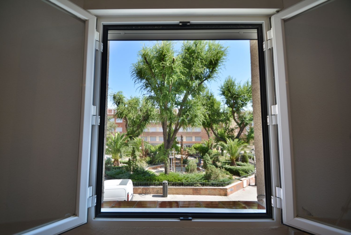 Distribución: Todas las estancias son amplias y con una distribución perfecta. Recibidor distribuidor de 10 m2, donde está ubicada la chimenea y un armario empotrado. Salón comedor de 17 m2 útiles y un dormitorio de 10 m2 con salida a terraza acristalada de 4 m2, con toldo, todo ello con orientación suroeste a la calle Juan Pascual de Mena. Dormitorio principal de 13 m2 útiles con orientación nordeste y vistas al parque de Domingo de Zaizita, al igual que la cocina de 9 m2, totalmente amueblada y equipada con electrodomésticos: lavadora, frigorífico, horno, microondas, campana extractora y cocina de gas con 4 fuegos. Un baño completo de 5,5 m2, con ventana a la calle, dotado de bañera con mampara de cristal templado, lavabo con encimera de mármol, mueble, espejo, inodoro y bidet.
