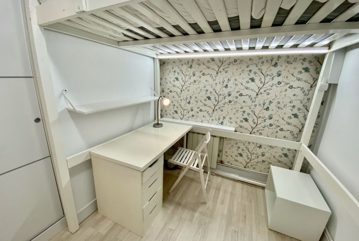 – El segundo dormitorio con altillo del mismo tamaño que la habitación y una altura de techo de 1,40 cm. suficiente y cómodo para utilizarse arriba como espacio de descanso, con cama individual, y la zona de estudio abajo, con confortable sofá cama individual por si se prefiere dormir abajo.