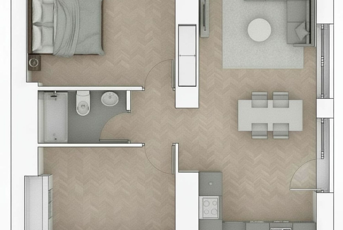 Se encuentra en bruto, para reforma íntegra. El proyecto es para una vivienda que consta de salón con cocina americana, una habitación doble con un gran vestidor y un baño.