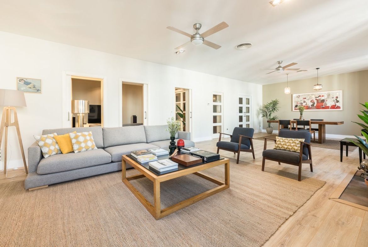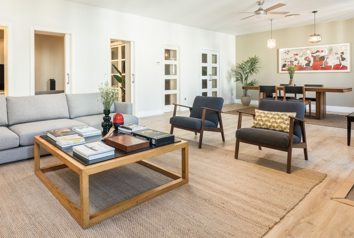 El Salón-Comedor con una gran luminosidad y elegancia absoluta es el gran protagonista de este inmueble, sus 54 m² lo convierten en un espacio diseñado para disfrutar al máximo del confort y la amplitud. Gracias a su generosa superficie, permite la creación de distintas áreas dentro de la misma estancia, ideal para quienes buscan una distribución versátil que combine zona de estar, comedor formal y área de reunión o lectura. Destaca por sus tres ventanales con balcones y orientación oeste, lo que garantiza una extraordinaria entrada de luz natural durante todo el día. La luz, combinada con la amplitud del espacio y la calidad de los acabados, aporta una atmósfera cálida y sofisticada. Este es, sin duda, el corazón de la vivienda, perfecto para reuniones, celebraciones y momentos de relax en un entorno exclusivo.