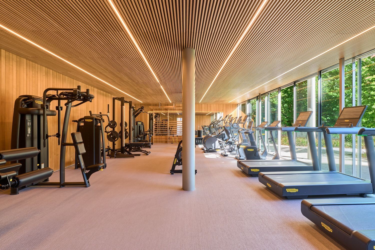 Gimnasio de 120 m2 con vistas al jardín y totalmente equipado.