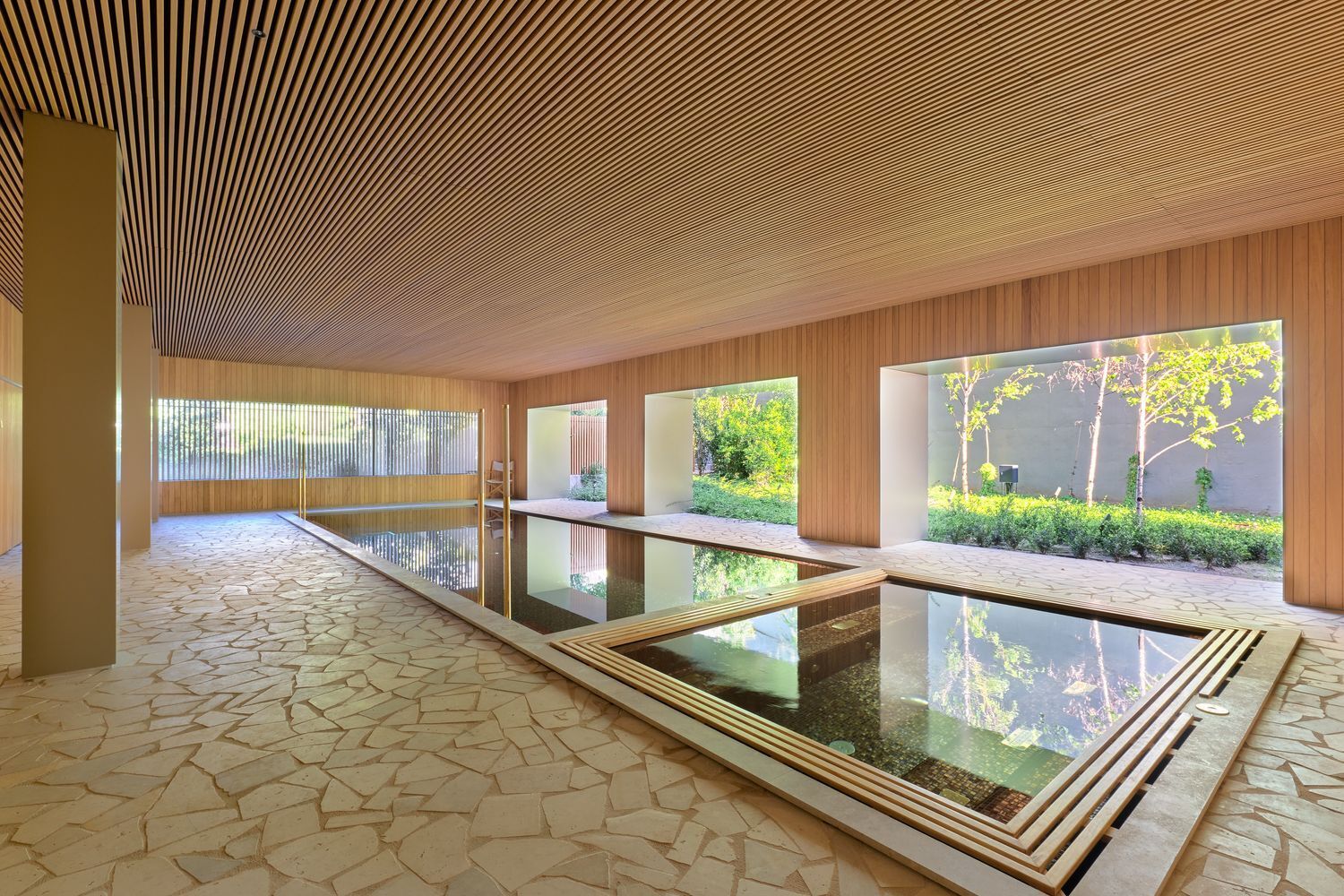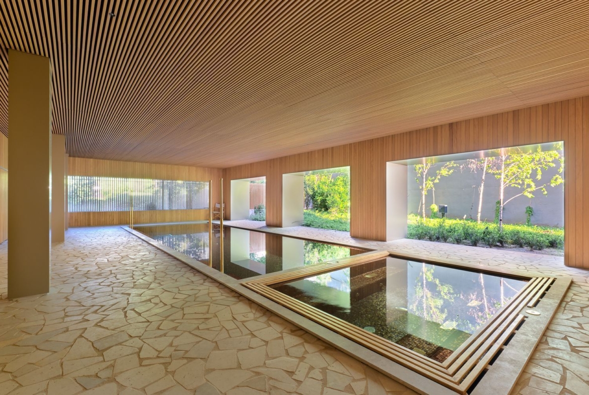 Zona de SPA y WELLNESS de 350 m2 con piscina interior, jacuzzi, piscina fría, hammam, sauna, caldarium, sala de masaje.