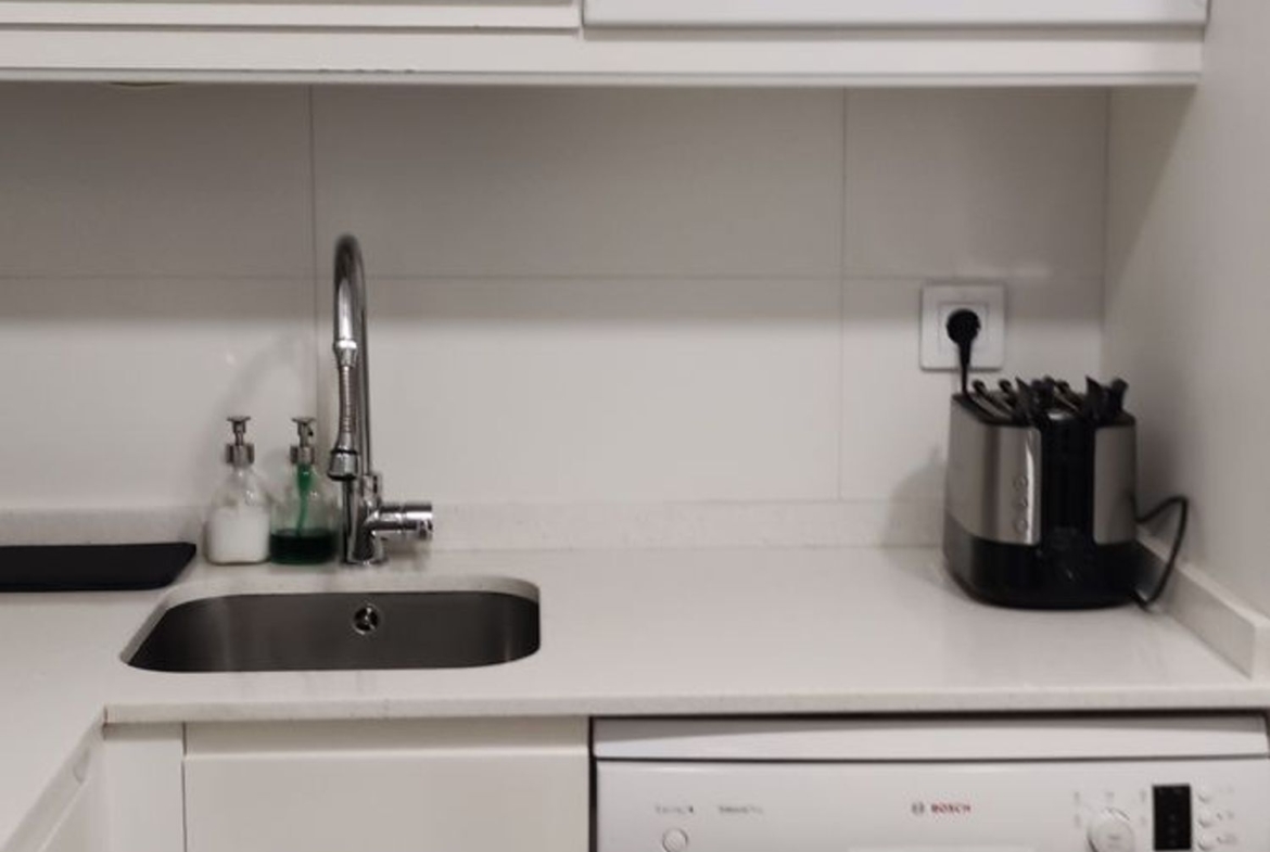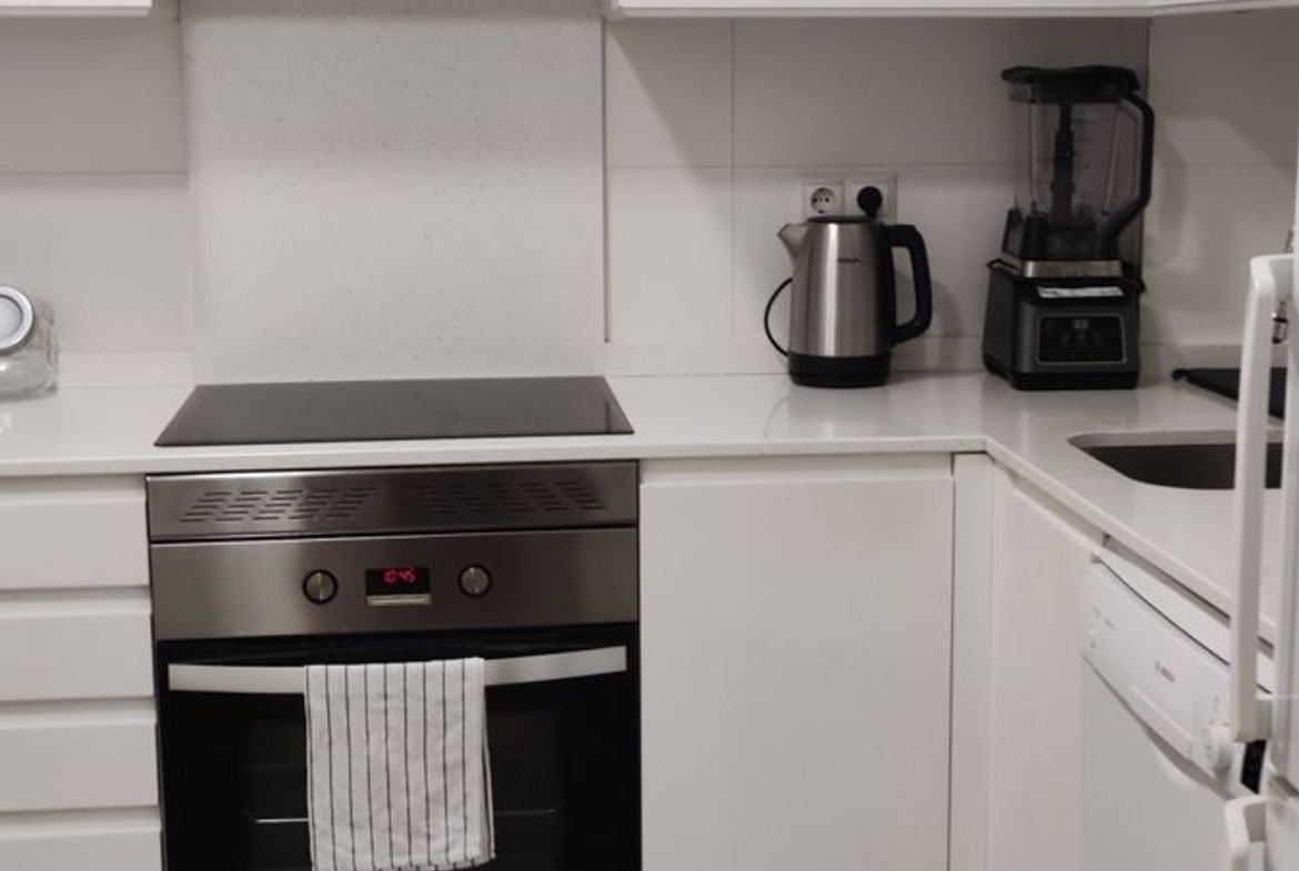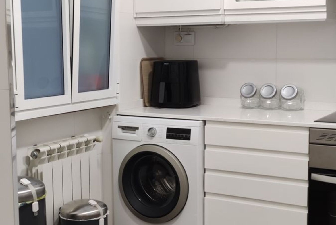 -Cocina independiente orientada a patio interior, con todos los electrodomésticos y mucho espacio para almacenaje.