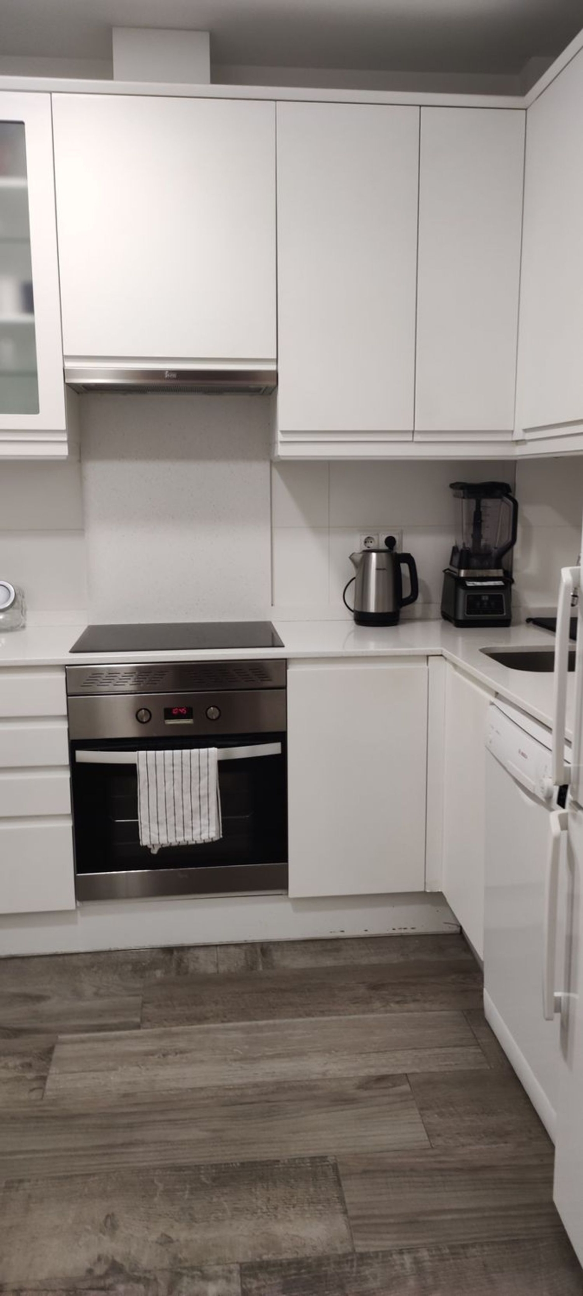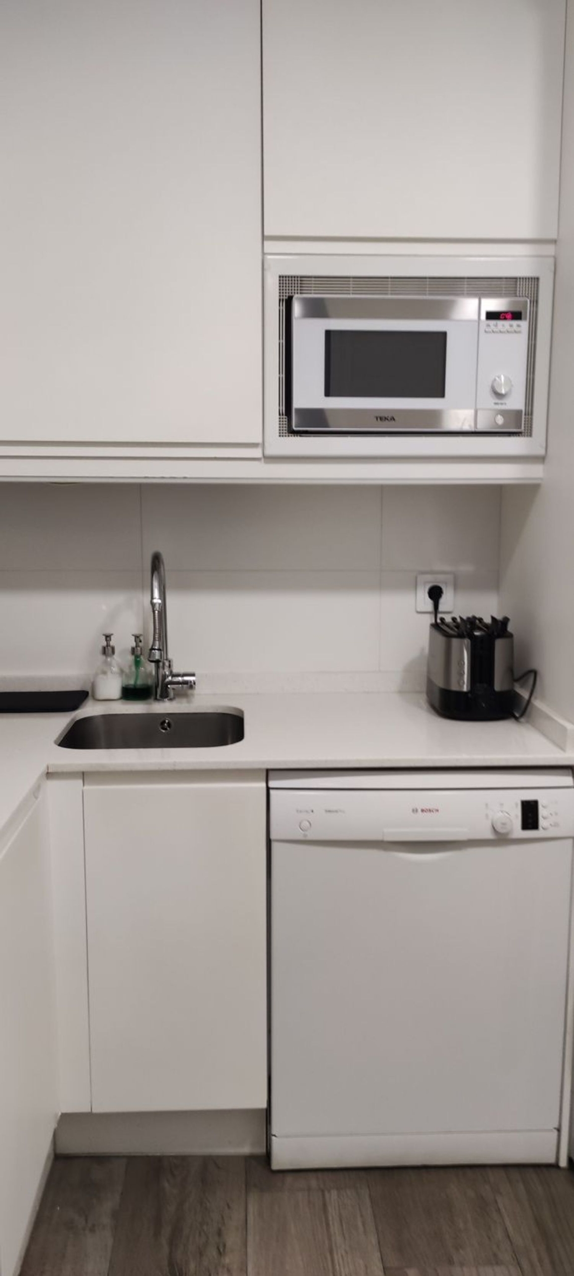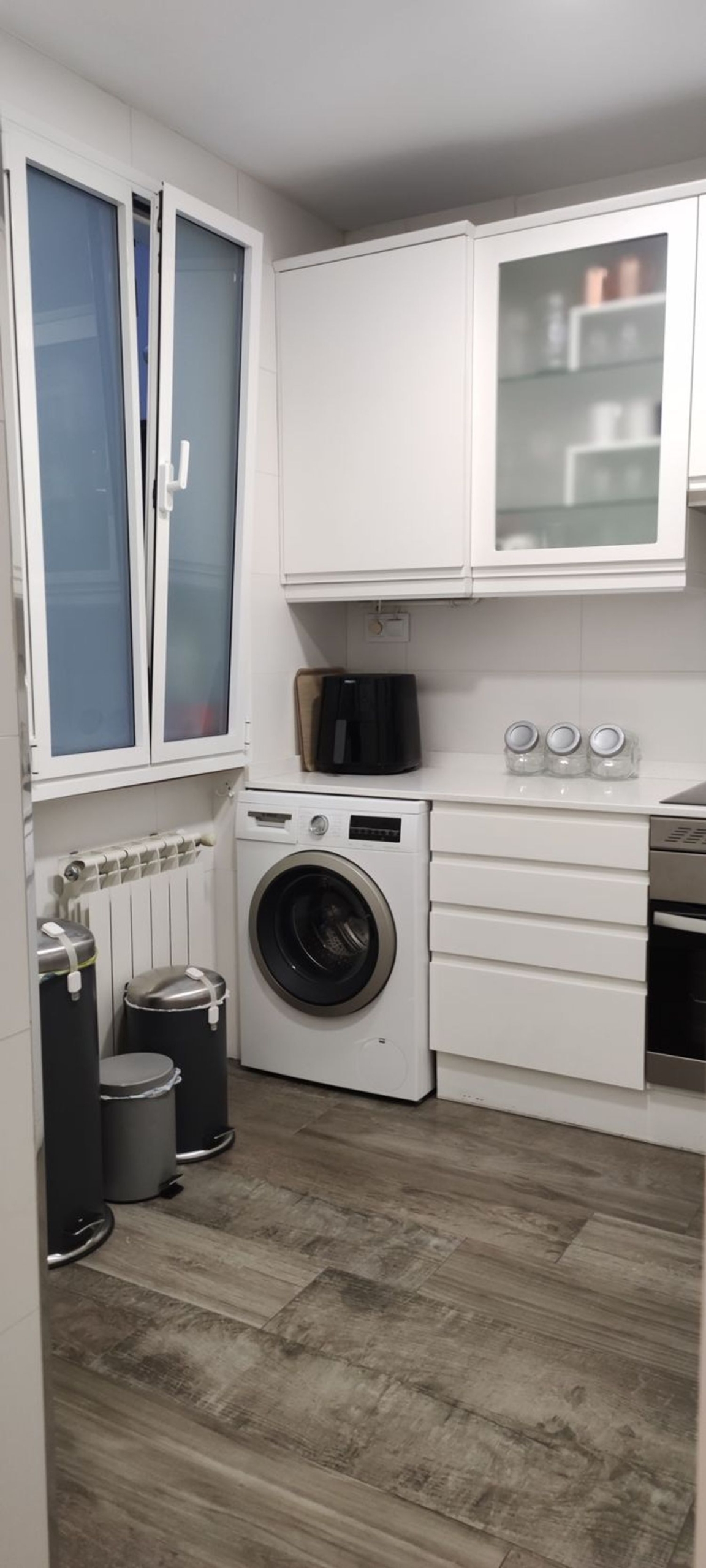 -Cocina independiente orientada a patio interior, con todos los electrodomésticos y mucho espacio para almacenaje.