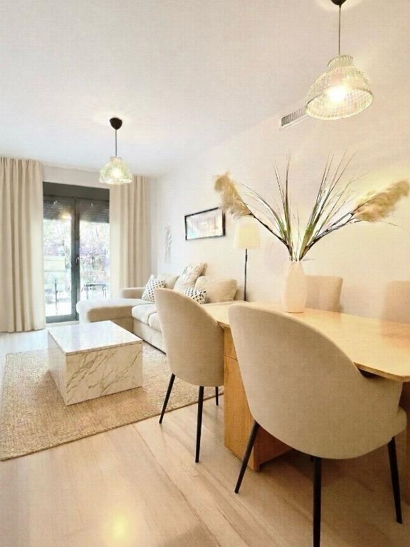 Remax Up, te presenta Esta casa, que es, literalmente, un refugio de paz en medio del motor de Madrid. La luz lo abarca todo nada más cruzar el umbral. Estamos en un bajo con jardín de 95 m² construidos, y lo primero que notaremos es la distribución. Aquí no hay metros perdidos. A tu derecha, la cocina independiente: impecable, completa, y lista para cualquier reto culinario. Si seguimos, entramos en la zona de noche con 2 dormitorios amplios. La suite principal es un lujo, con su propio baño privado, ideal para desconectar del todo. Pero si miramos hacia el salón y abrimos esas puertas, encontramos El Jardín: Tu nuevo rincón favorito; estos 84 m² de jardín privado son el alma de la propiedad. Al tener orientación oeste, te garantiza unos atardeceres espectaculares y luz natural durante toda la tarde. Y lo mejor… silencio absoluto. Muchos propietarios están instalando cerramientos acristalados de alta gama en el porche para instalar un despacho privado o un comedor de invierno rodeado de verde.