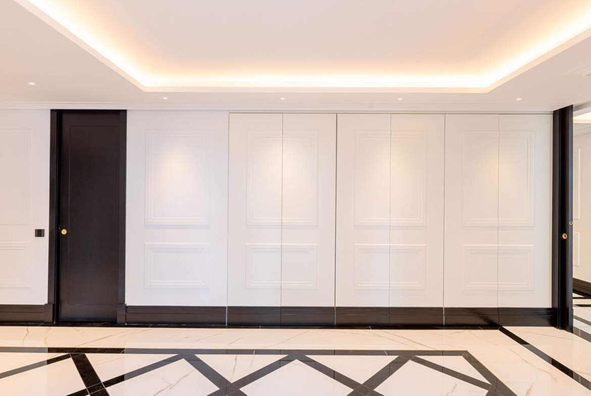 La iluminación, diseñada por la firma ILUMISA, cuenta con sistemas LED en cabeceros, hornacinas y techos. Los techos decorativos, con foseados y candilejas iluminadas, delimitan las estancias con estilo. Armarios empotrados iluminados con diseño exclusivo completan el lujo en cada dormitorio.
