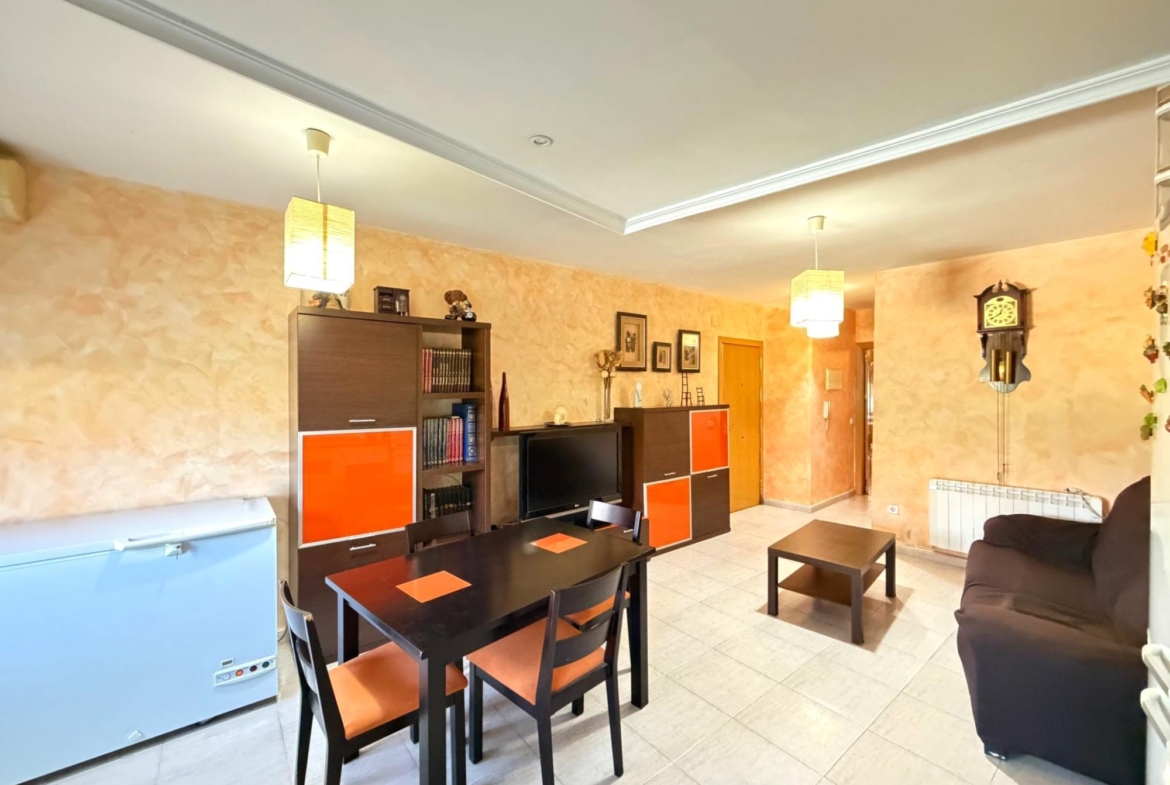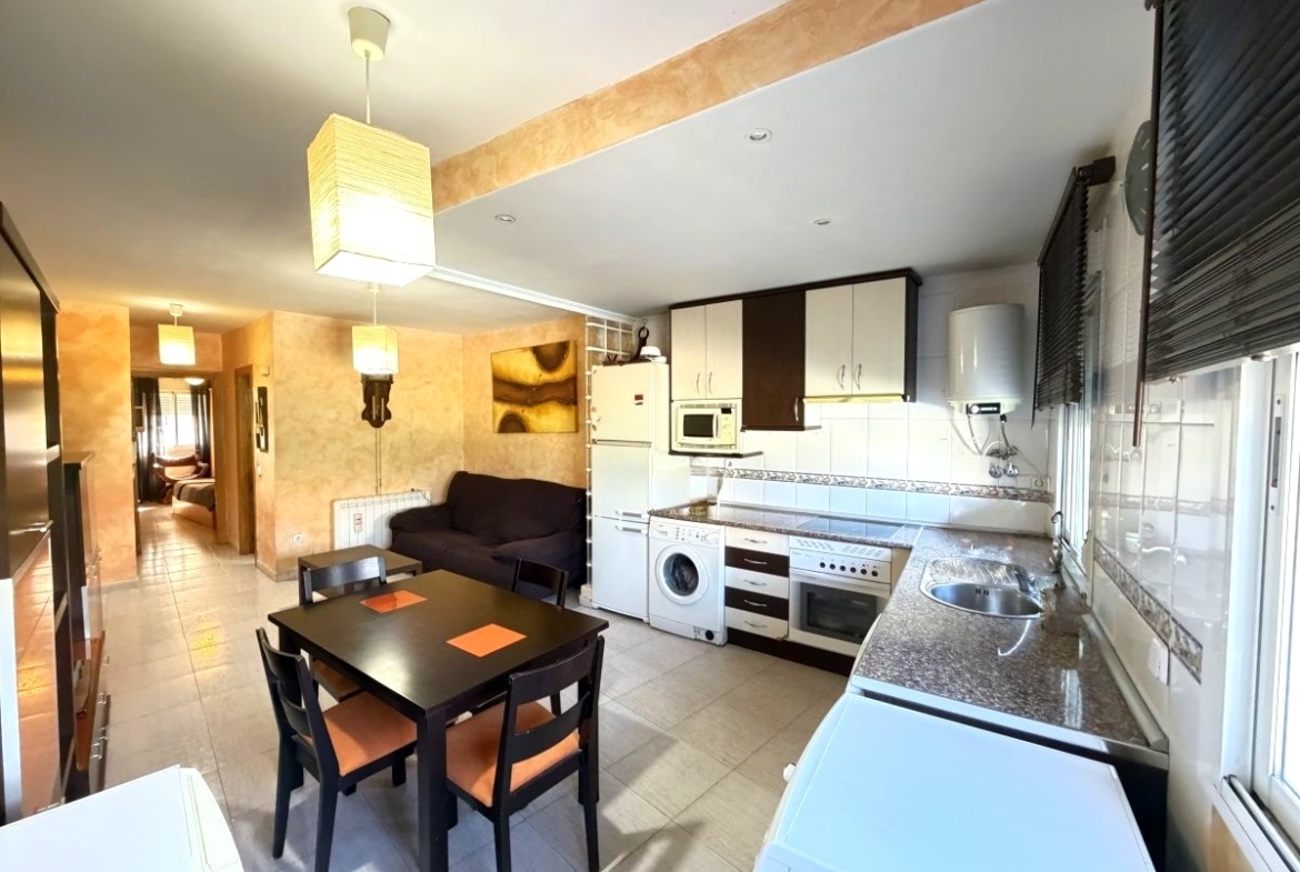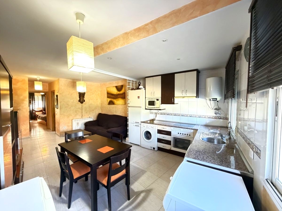 La vivienda se distribuye en salón con cocina americana integrada nada más acceder, configurando un espacio abierto y funcional. Cuenta con baño completo equipado con plato de ducha. En el salón encontramos aire acondicionado con bomba de frío y calor, además de calefacción individual eléctrica, lo que permite un control independiente de la temperatura durante todo el año. A destacar entre las cualidades de la vivienda la carpintería exterior de aluminio con sistema Climalit, que aportan aislamiento térmico y acústico.