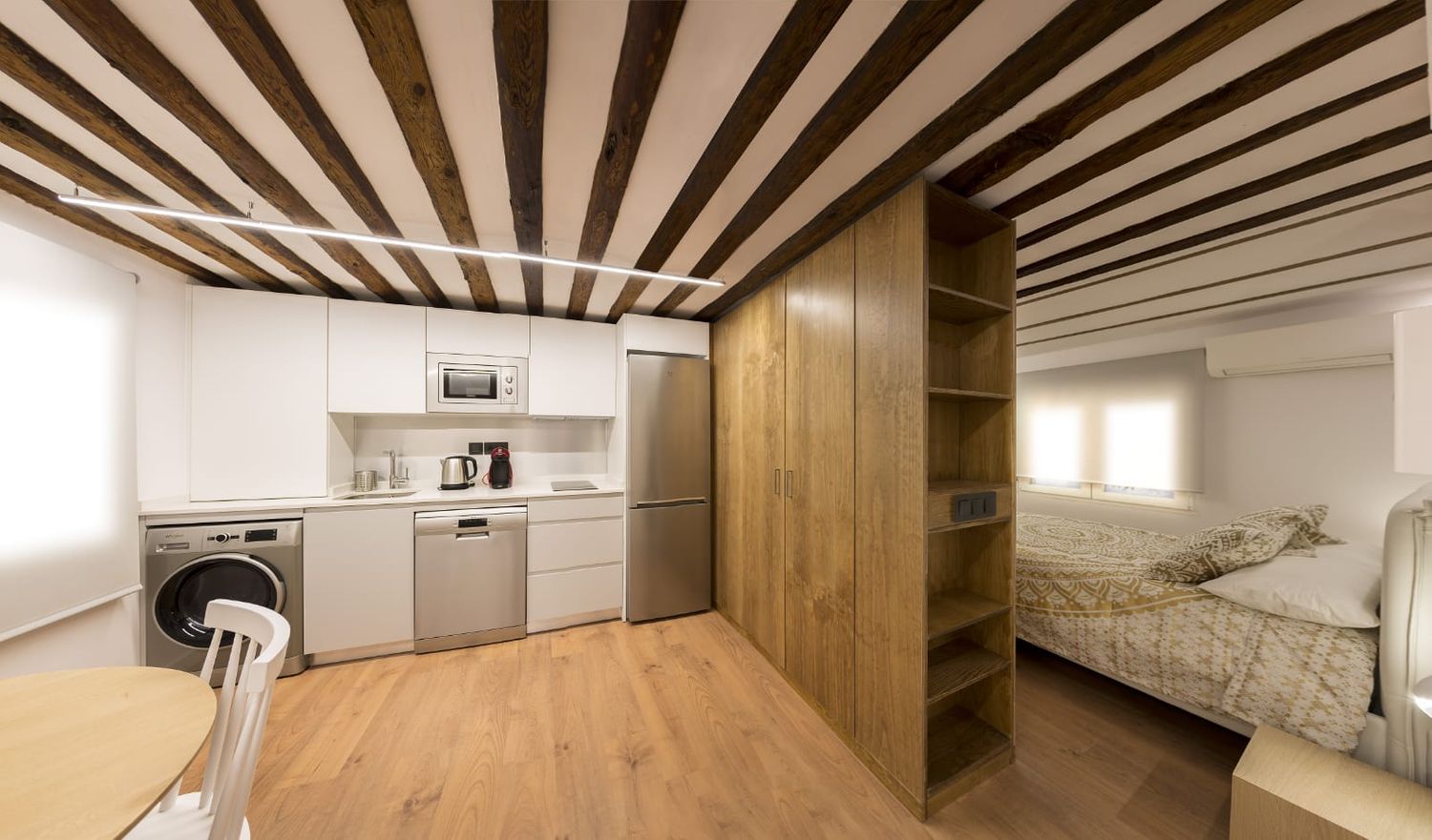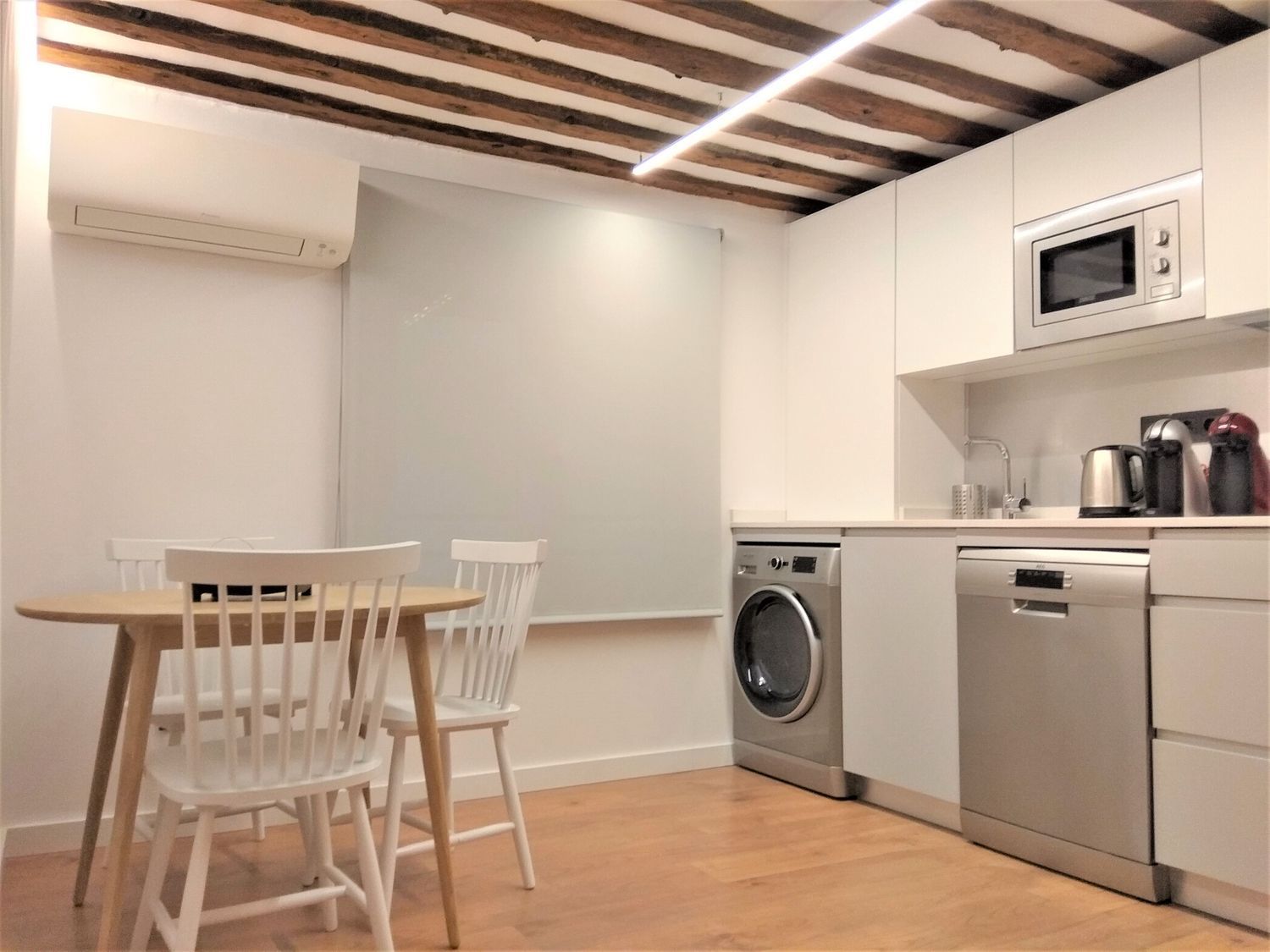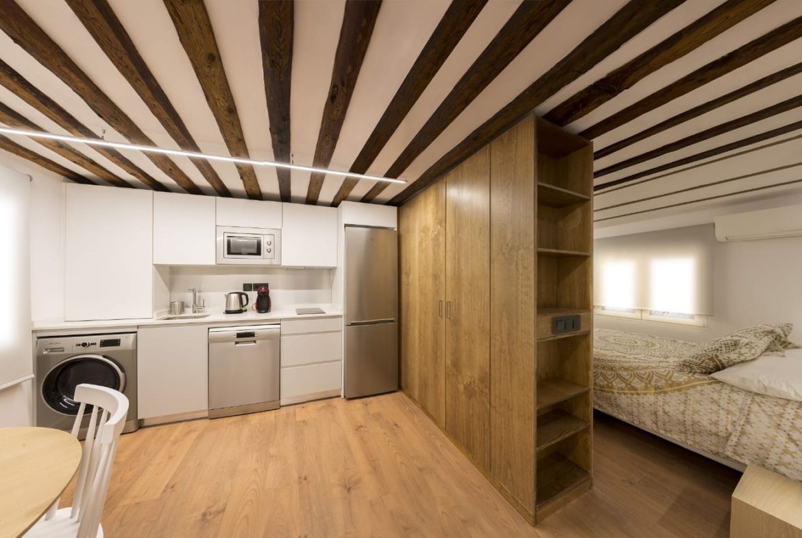 El precio INCLUYE internet, electricidad, agua, gas, calefacción-aire acondicionado, gastos de comunidad y limpieza semanal; es decir, más comodidades incluso que un hotel.