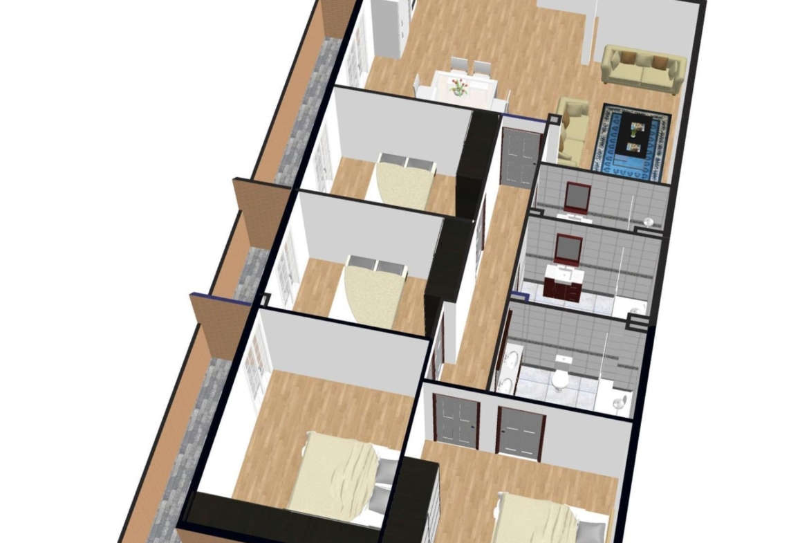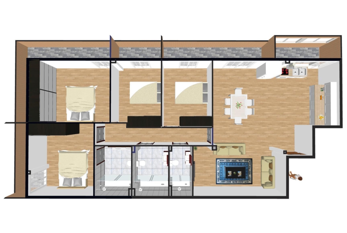 Es muy luminoso gracias a su altura en la octava planta, a que es totalmente exterior haciendo esquina, a su doble orientación norte y oeste, y a su terraza perimetral que rodea toda la vivienda. Actualmente se distribuye en cuatro habitaciones, la principal con baño en suite y todas con armarios empotrados, tres cuartos de baño, un amplio salón comedor con salida a la terraza, una buena cocina independiente con terraza tendedero y un hall recibidor.
