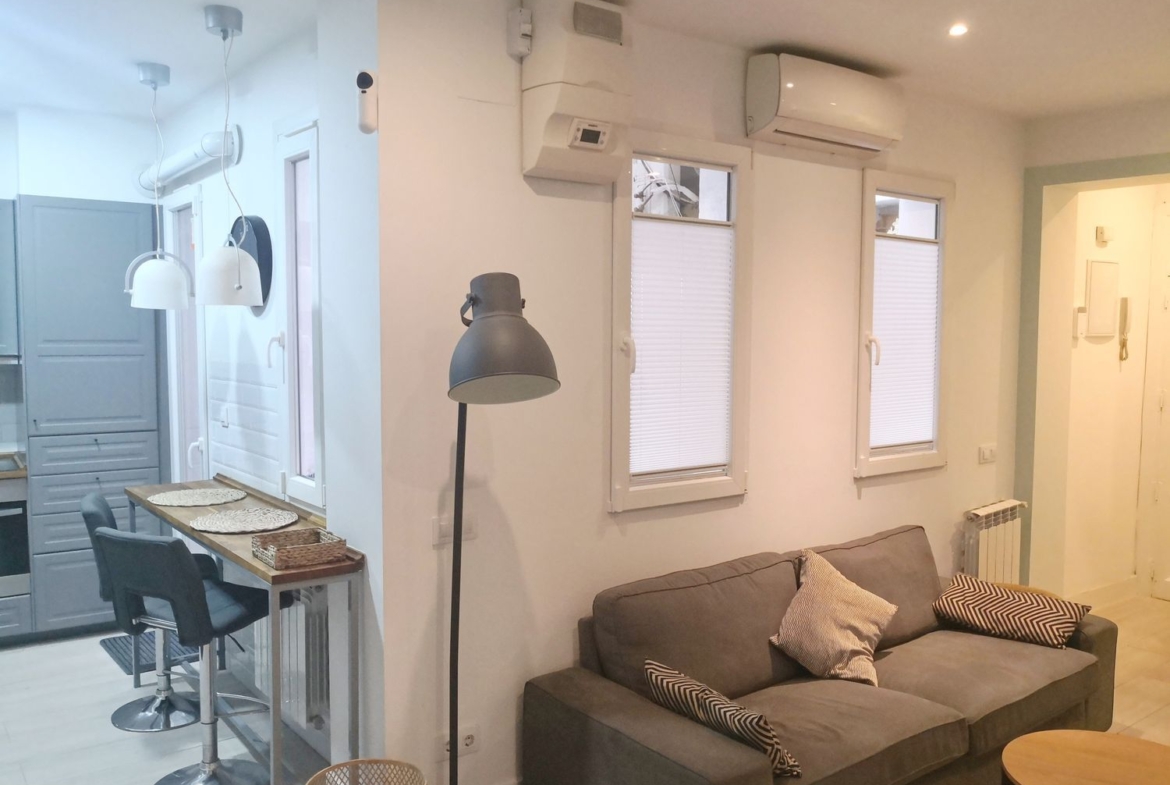 Se compone de un salón con cocina americana amueblada y equipada con electrodomésticos de última generación de primeras marcas: frigorífico, lavavajillas, lavadora, horno, microondas, vitrocerámica, campana extractora y caldera. La cocina incluye un amplio surtido de menaje y todo lo necesario para el día a día en un hogar.