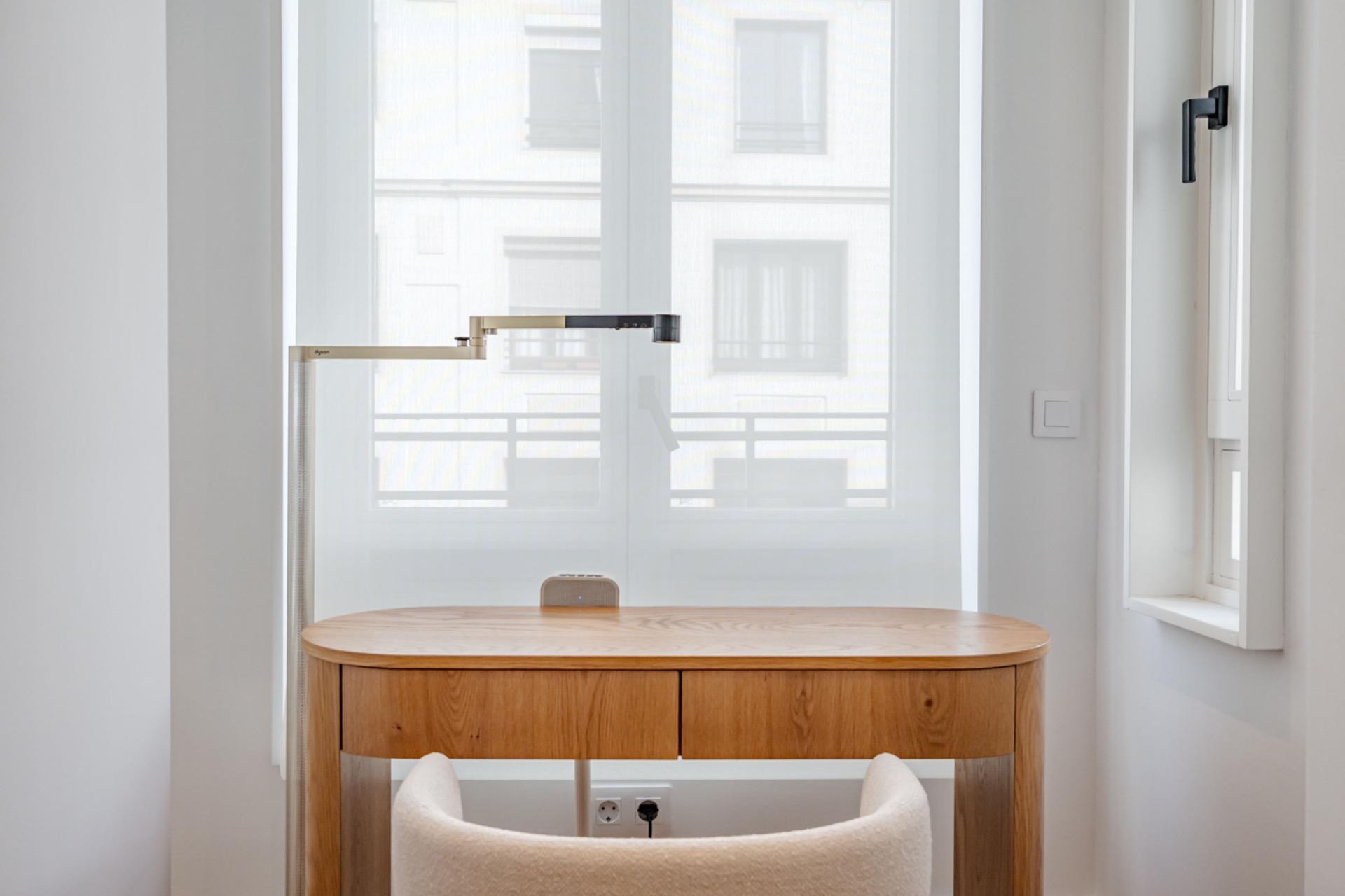 La vivienda se ubica en una planta intermedia lo que le proporciona vistas abiertas a una calle representativa y una excelente entrada de luz natural durante todo el día. Su altura y orientación aportan una agradable sensación de amplitud y privacidad.