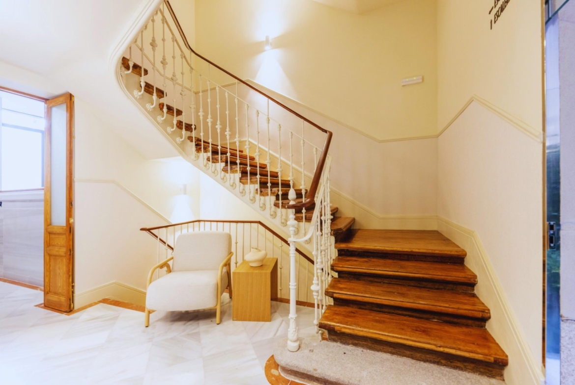 El edificio ha sido rehabilitado respetando su diseño original en portal y escaleras, incorporando tecnología y seguridad de última generación.