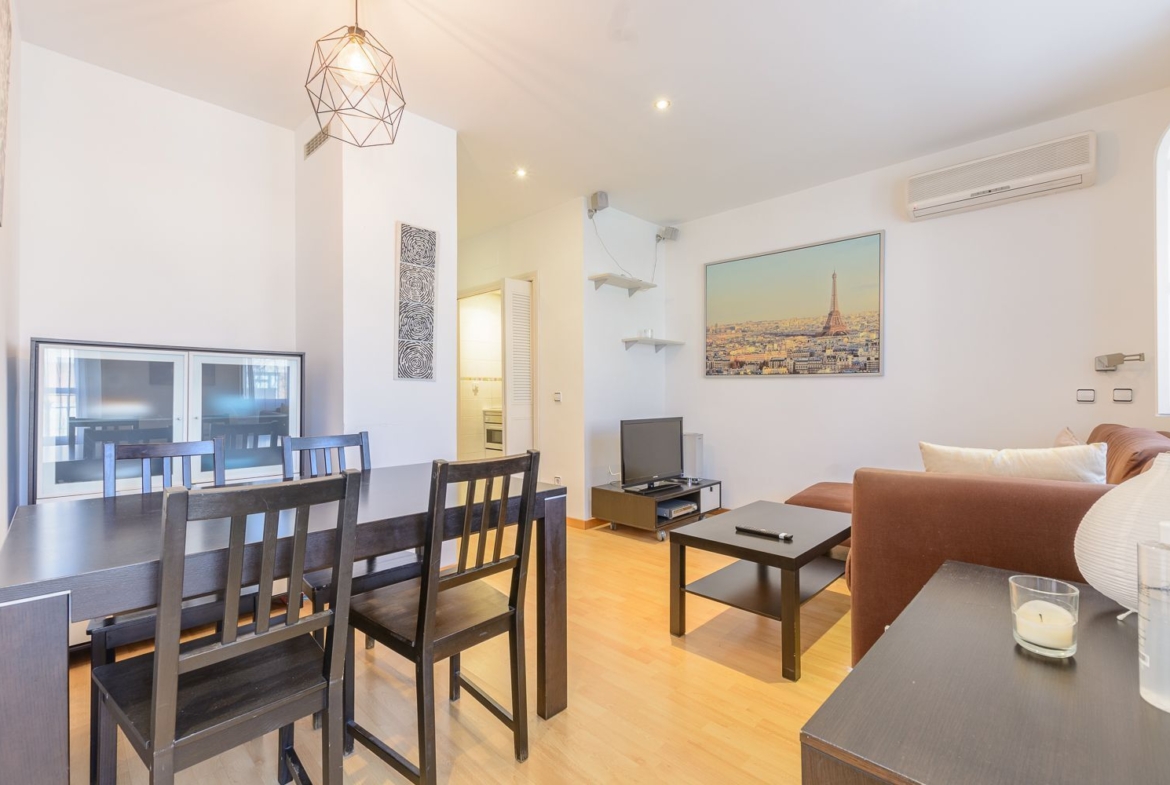 El inmueble está en buen estado, amueblado, con suelo de parquet, aire acondicionado, calefacción individual, consta de 1 dormitorio, cuarto de baño, salón y cocina americana.