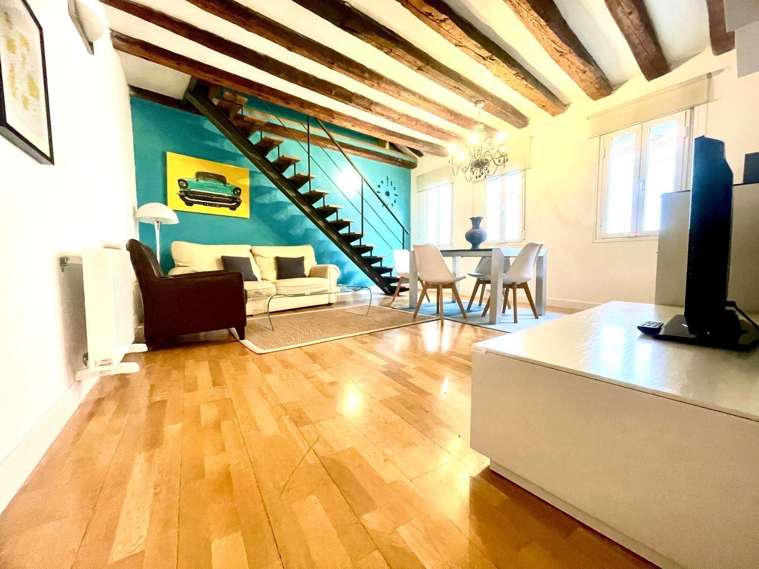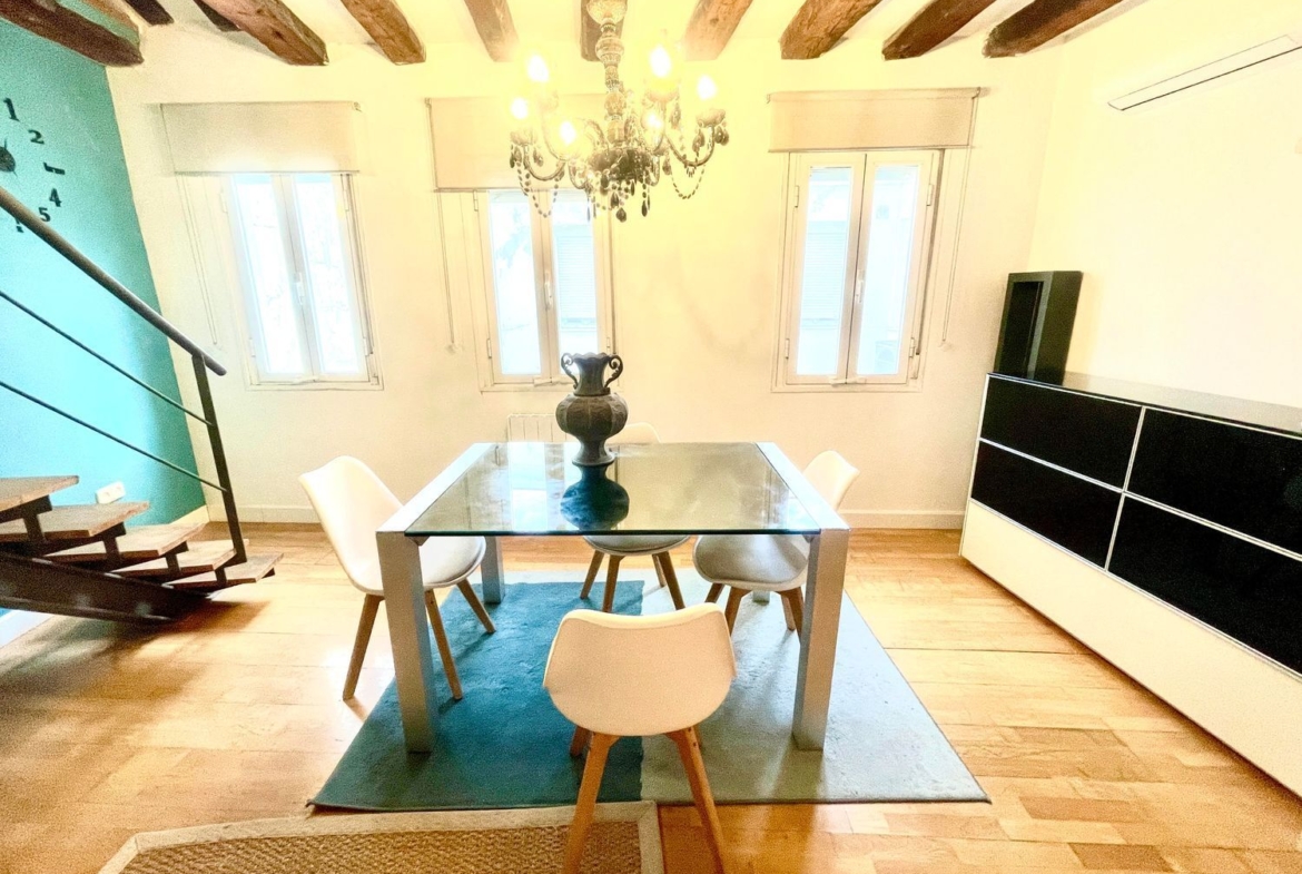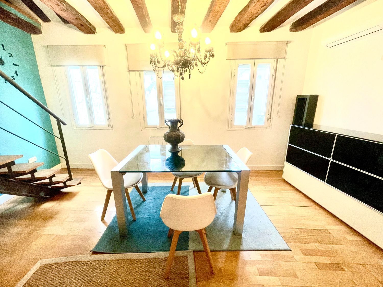 Piso luminoso con piscina y gimnasio, amueblado con dormitorio amplio en planta baja, amplio salón, baño, cocina con frigorífico, lavadora, lavavajillas etc. Dormitorio abuhardillado en planta superior con escritorio y también aire acondicionado.