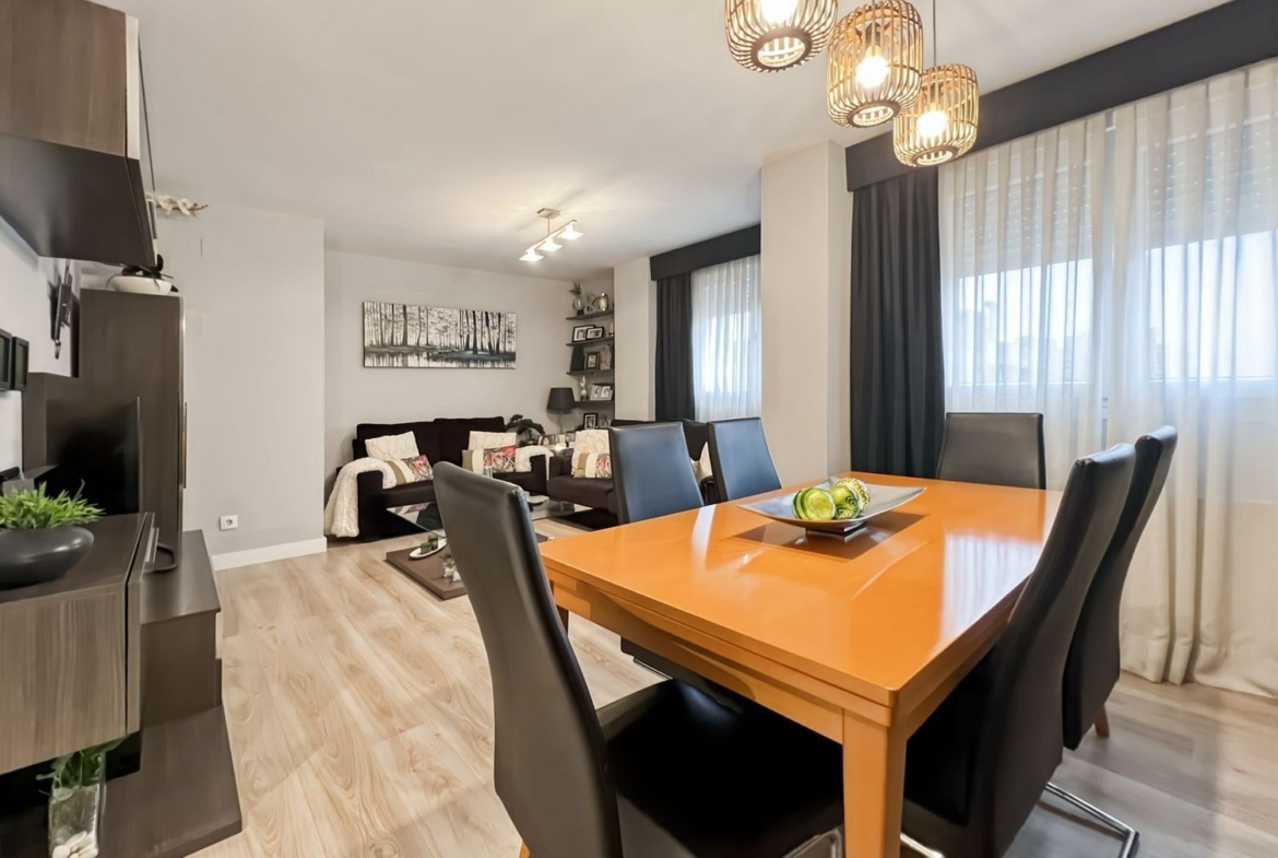 Ofrece un ambiente acogedor con salón de buen tamaño muy luminoso gracias a su orientacion, cocina espaciosa con tendedero y tiene tres dormitorios con armarios empotrados y dos baños recien reformados, habitacion principal en suite.