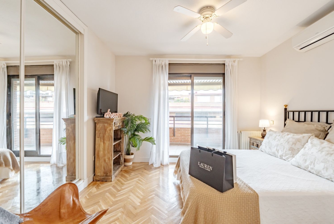 DORMITORIO PRINCIPAL de 13 m2, un verdadero oasis, con una 2ª y FANTÁSTICA TERRAZA de 13 m2, que lo rodea completamente y la posibilidad de cerrarla para ampliar aún más el espacio.