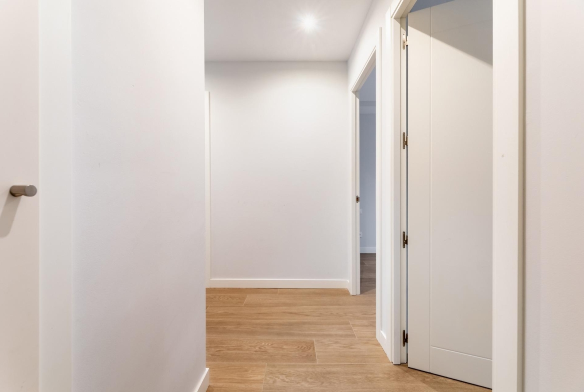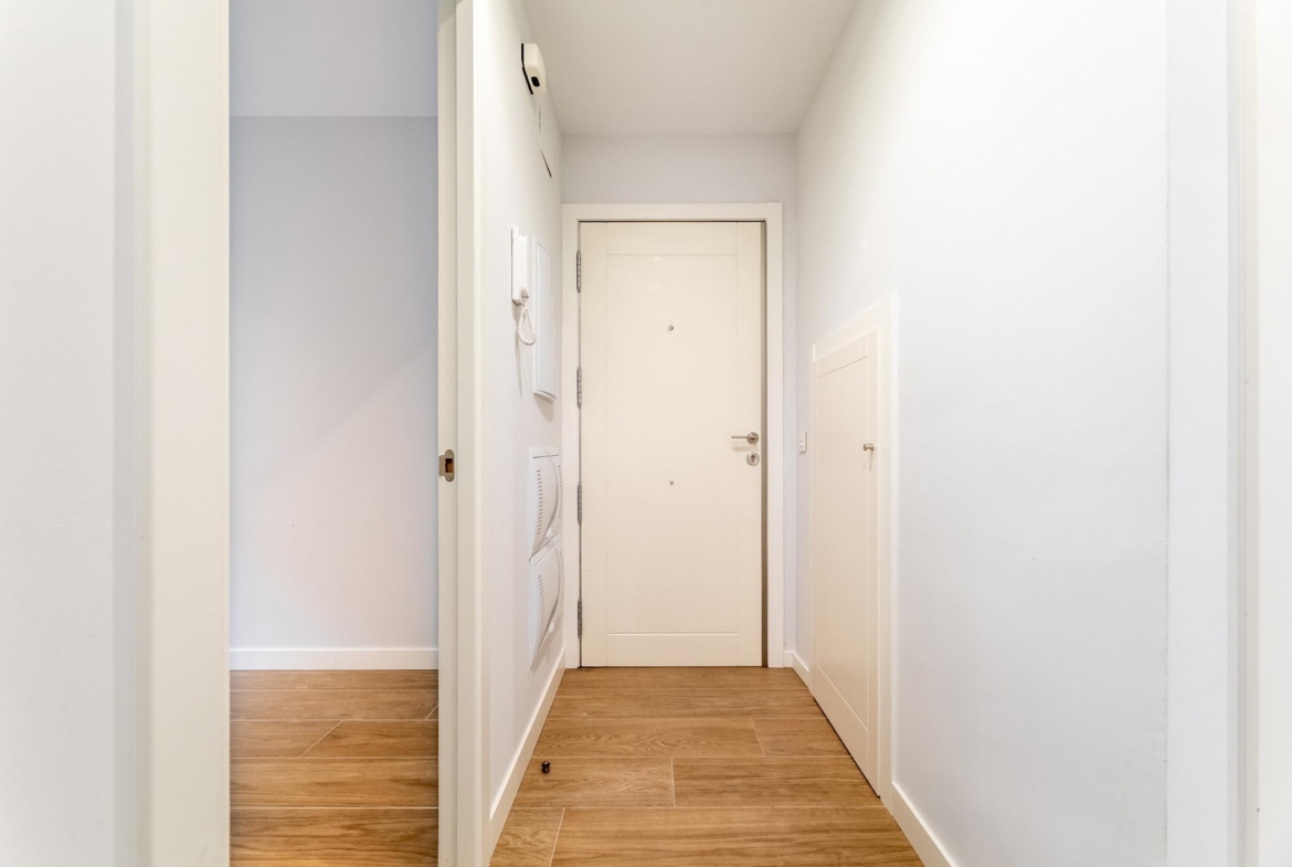 Desde la entrada principal accedemos a un hall que da paso a la izquierda a un salón-cocina todo unido, a la derecha a dos dormitorios simples y de frente a un baño completo que da uso a estos además de servir de aseo de cortesía. la cocina está totalmente equipada. Desde la cocina salimos a una pequeña terraza tendedero apta para zona de almacenaje, lavandería…
