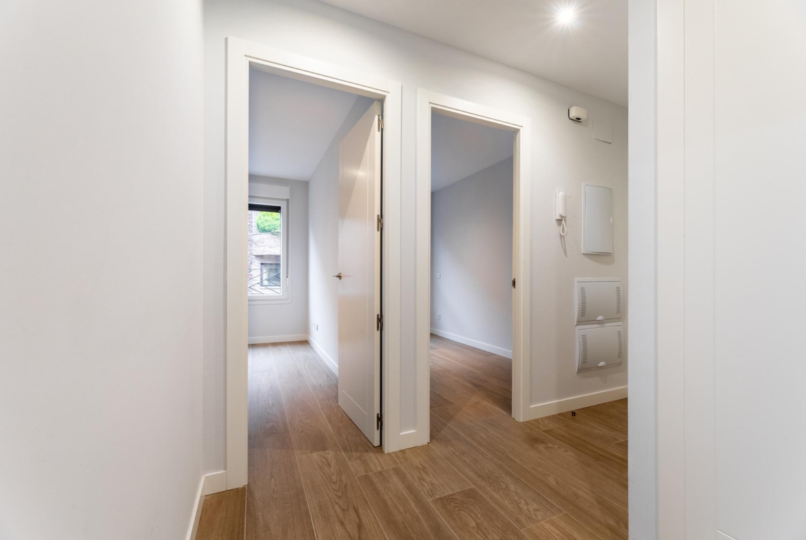 Desde el mismo hall de entrada subimos a una segunda planta a la que llegamos a un amplio dormitorio principal con baño en suite y vestidor, todo el exterior.