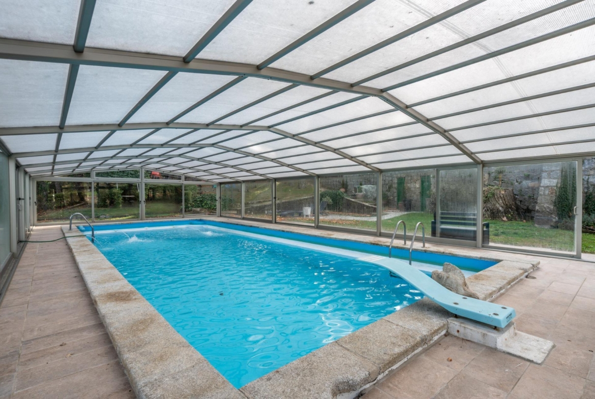 En el exterior, la finca despliega un entorno natural impecable con grandes praderas verdes, zonas de bosque, estanques, pozos de riego con sistema automático, pista de frontón, áreas de juegos infantiles y una espectacular piscina climatizada de cloración salina con cerramiento acristalado, pensada para su uso durante todo el año. La finca cuenta además con placas solares, reforzando su carácter sostenible y eficiente.